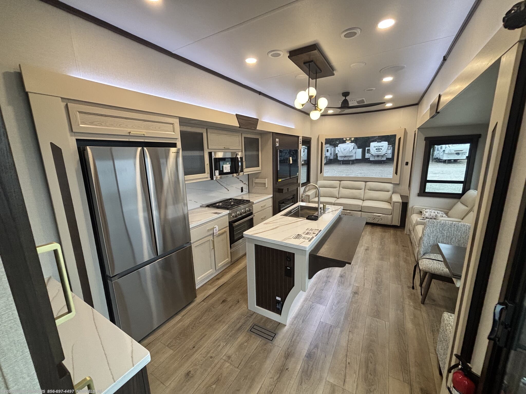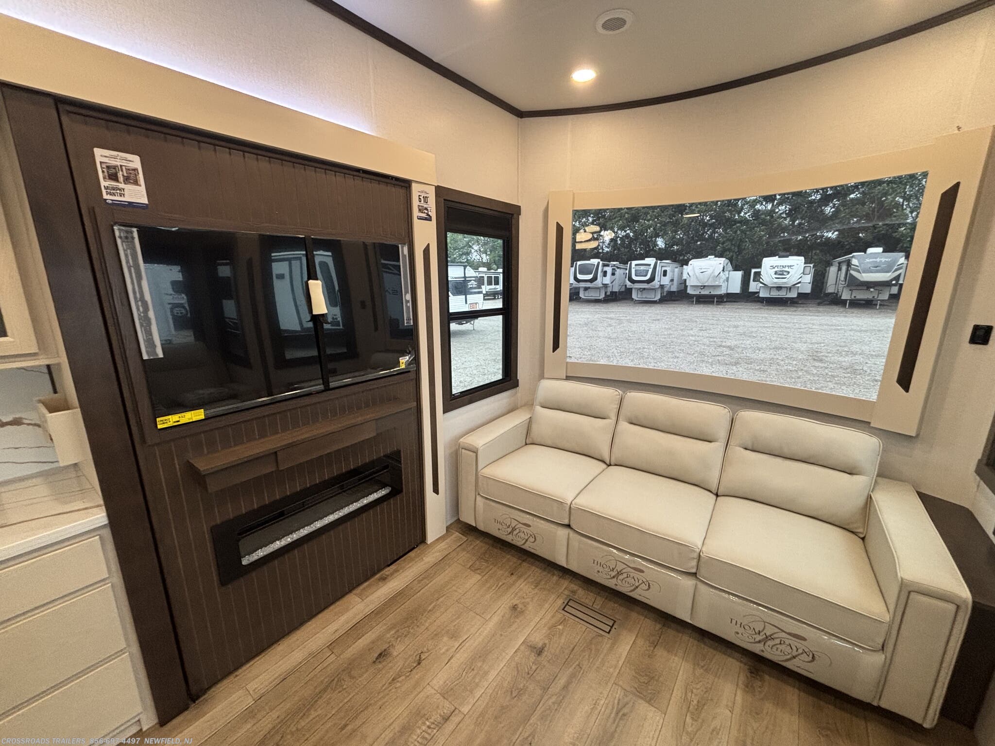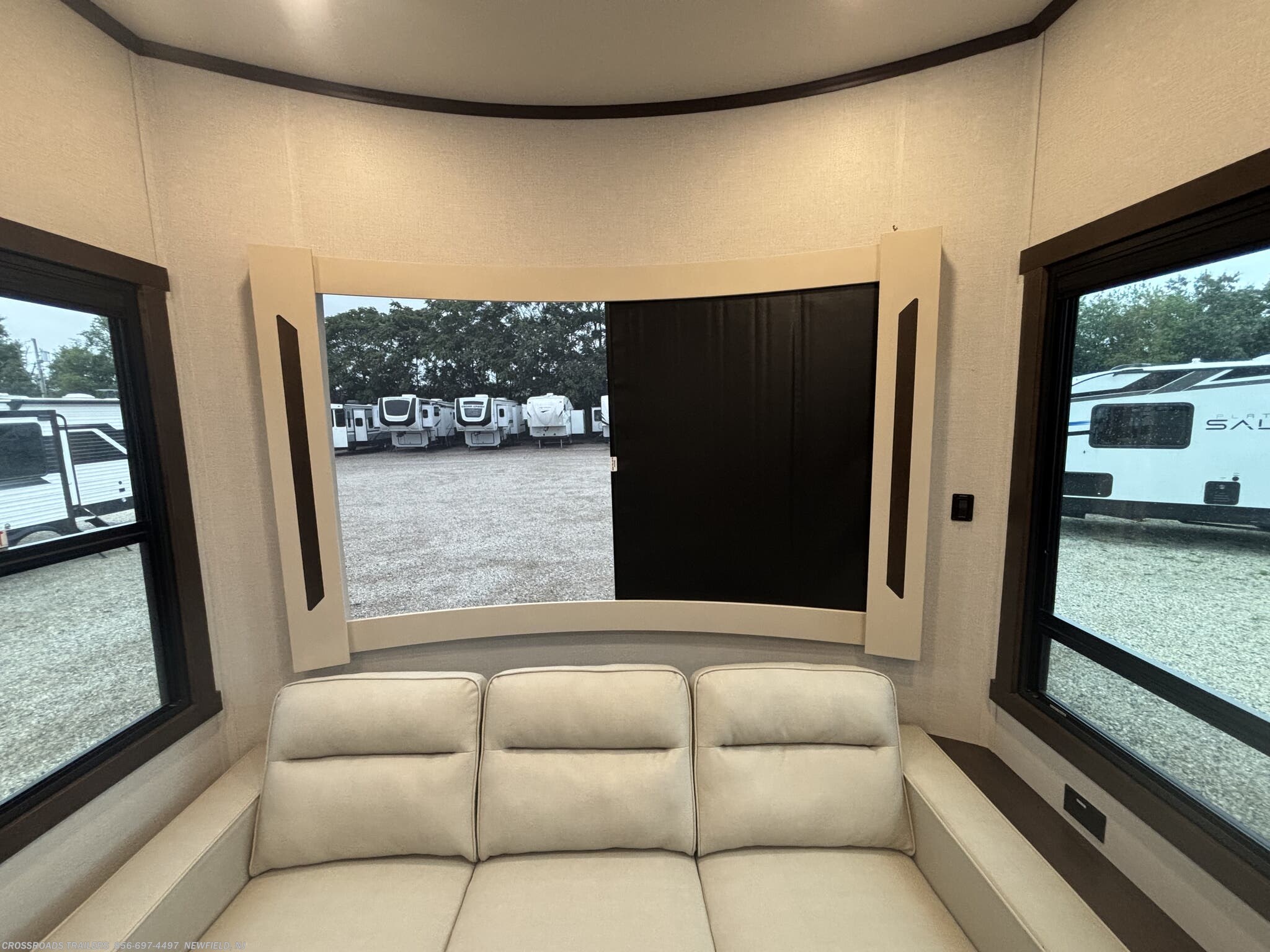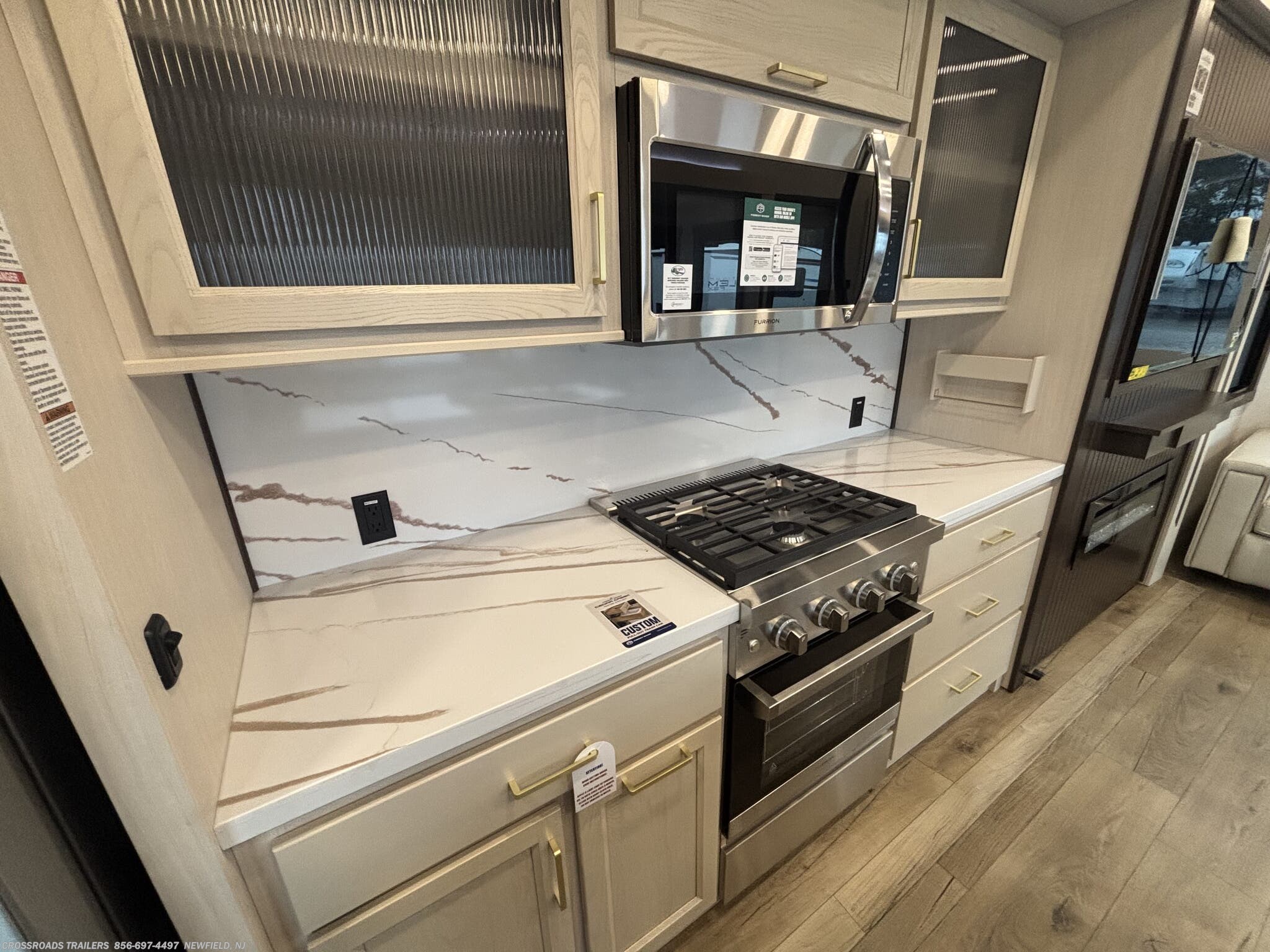 The 40CCK floorplan is crafted to maximize livability. It features a Front Living Area and Front Entertainment setup, a Kitchen Island for extra countertop space, and a Mid Bath and Mid Kitchen for convenient family flow. The Rear Bedroom provides a quiet retreat, while the three slideouts expand interior width and ease of movement. Ideal for families or couples seeking a home-away-from-home experience with generous storage and modern comfort.
