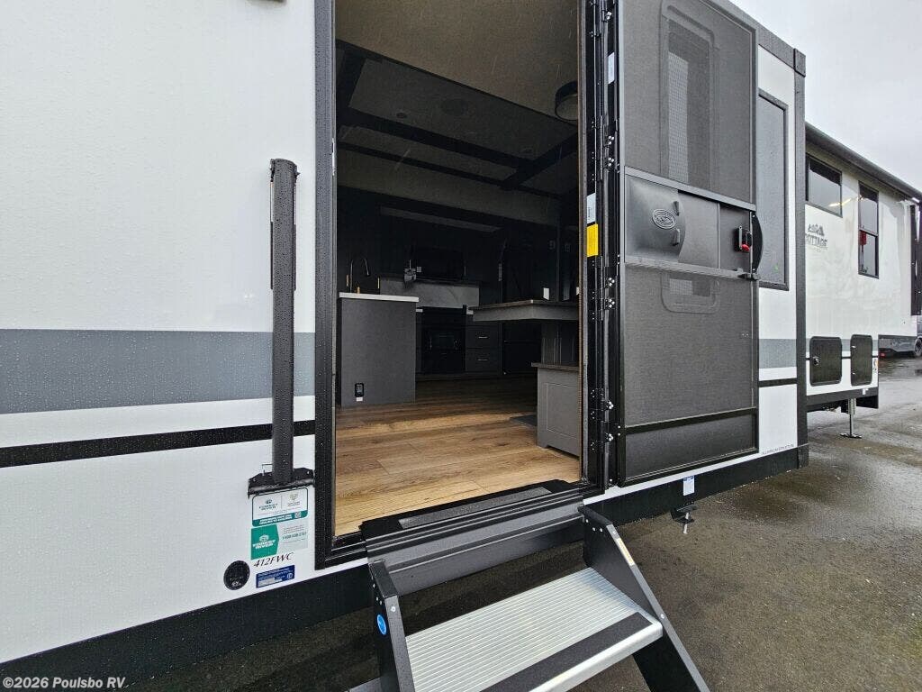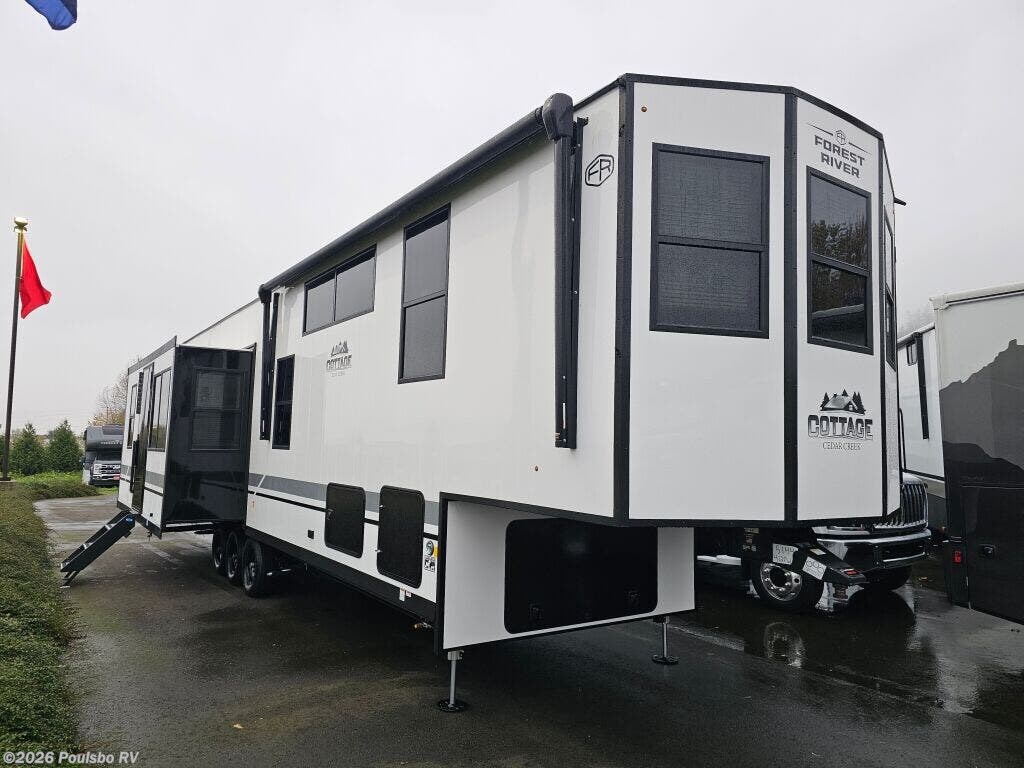 The 2026 Forest River Cedar Creek Cottage 412FWC is a new luxury RV designed to redefine your travel experience with spacious living and versatility. At over 42 feet long, this model offers ample space for up to seven people to sleep comfortably, making it ideal for family adventures or extended getaways. Featuring two slide outs, the interior expands to create a roomy living area that maximizes comfort and usability, blending convenience with style. Enjoy the flexibility provided by the bunkhouse area, perfect for accommodating kids or guests. The thoughtful layout enhances the sense of home while on the road, encouraging relaxation and memorable moments in nature. This model is equipped with one awning to provide shade and outdoor living space, adding to the enjoyment of camping or tailgating. Advanced leveling jacks contribute to a stable and secure setup wherever your travels take you, while ample hitch and towing capacity ensure confidence in transport. Inside, expect a well-appointed living space with carefully planned features for convenience and comfort throughout your journey. Whether you are seeking leisure or adventure, this RV balances both with strong build quality and a reputation supported by Forest River. As a family-owned, award-winning local RV dealer with multiple locations in Sumner, Everett, Kent, and Mt Vernon Washington, Poulsbo RV here to help you find the perfect RV. Stock#: S922, VIN: 4X4FCR833TS235144.