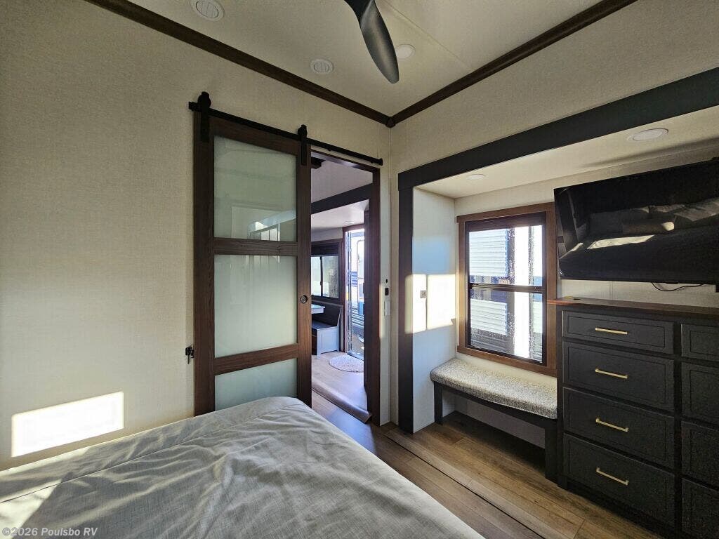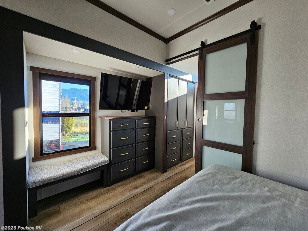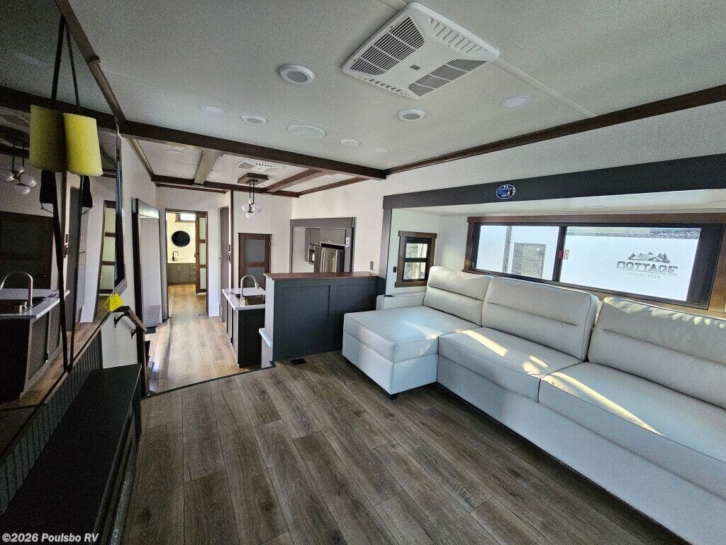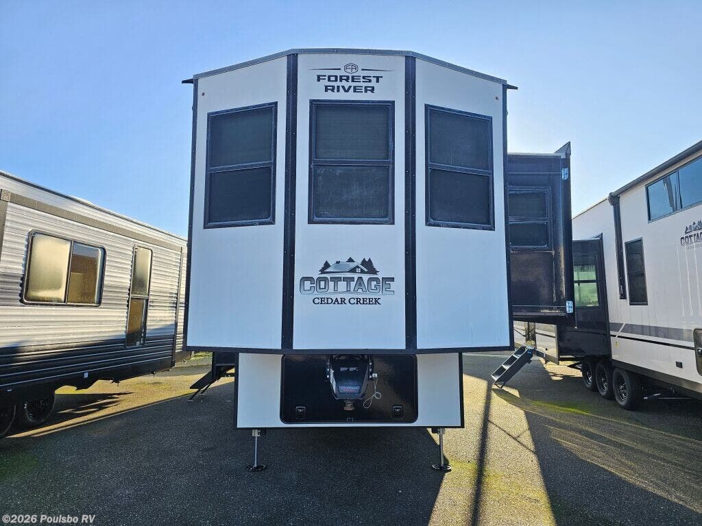 The 2026 Forest River Cedar Creek Cottage 413FWC is an elegant and spacious new fifth wheel that expertly combines comfort, style, and functionality for the discerning RV enthusiast. Designed to enhance your adventures, this model features an impressive five slide outs that greatly increase the interior living space, allowing you to enjoy a roomy and inviting atmosphere whether relaxing inside or entertaining guests. Its thoughtful design offers sleeping accommodations for four, making it a perfect choice for couples or small families looking for a home away from home. The well-appointed interior delivers a harmonious balance of luxury and practical living conveniences, including a well-equipped kitchen, ample storage areas, and spacious living quarters that provide both privacy and flexibility for your travel needs. The Cedar Creek Cottage 413FWC is built with a strong GVWR rating supporting reliable performance, and its dry weight ensures manageable towing while offering the stability provided by its leveling jacks for easy setup at any destination. Adding to your comfort, the single awning creates a pleasant shaded outdoor space that complements the expansive interior. This model is designed to inspire confidence in every journey, providing the essential features and room to live freely on the road without compromise. As a family owned, award winning local RV dealer with multiple locations in Sumner, Everett, Kent, and Mt. Vernon Washington, Poulsbo RV here to help you find the perfect RV. Stock#: M3786, VIN: 4X4FCR833TS235645.