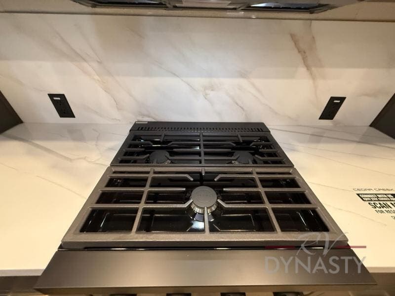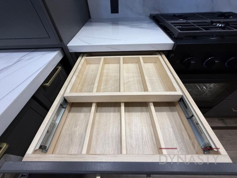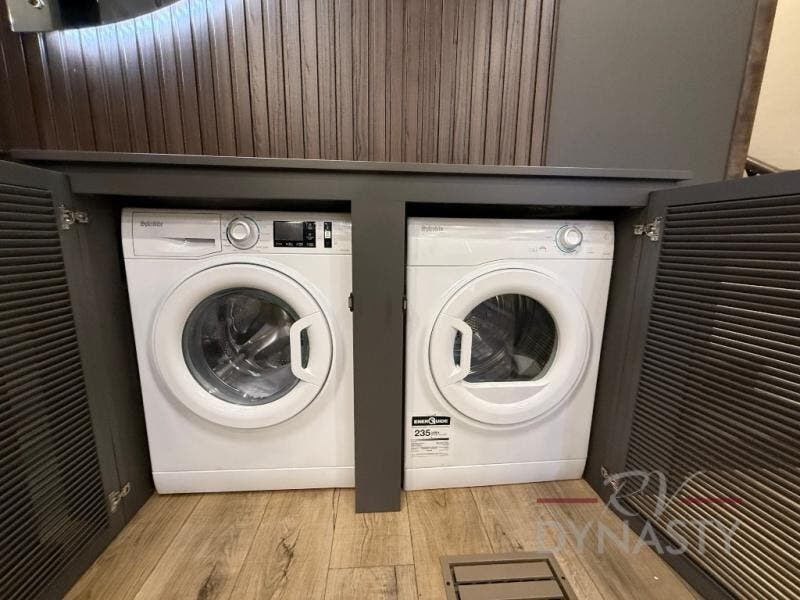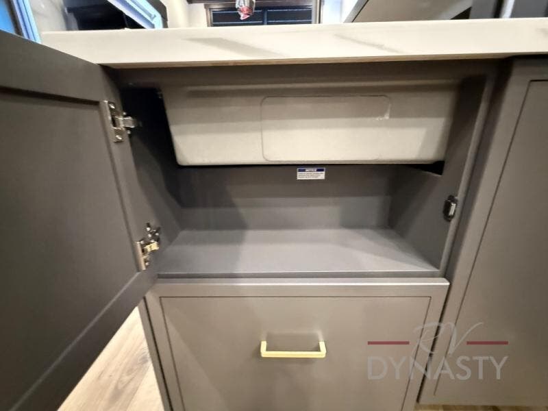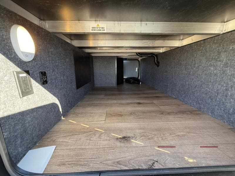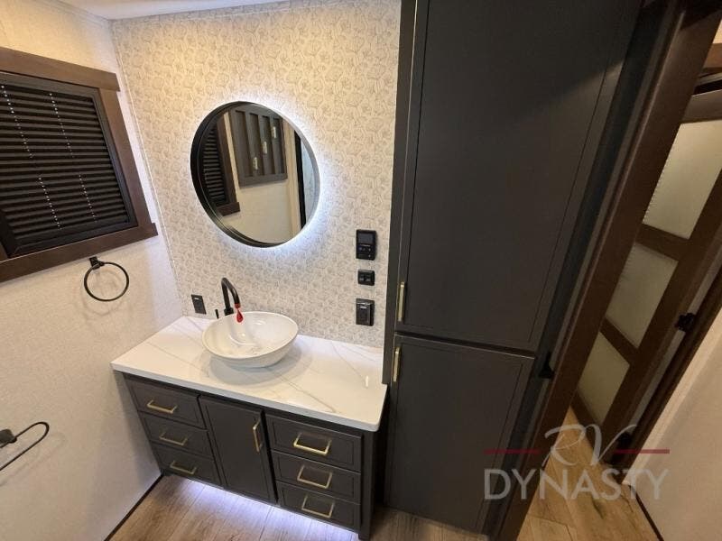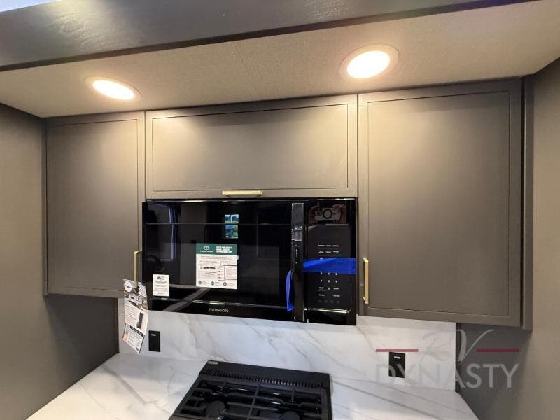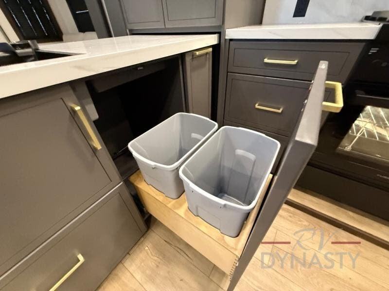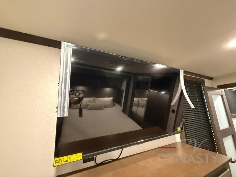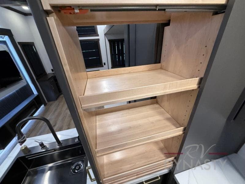 The rear living room is a spacious retreat, featuring a comfortable sectional sofa and a flip desk perfect for working or relaxing. Unwind with a glass of wine at the wine bar, or cozy up by the fireplace while enjoying your favorite show on the TV. The mud room is a practical and convenient feature, perfect for storing gear, boots, and jackets. The kitchen is fully equipped with overhead cabinets, a microwave, a refrigerator, and a table with swivel chairs, providing a comfortable spot to enjoy meals with family and friends. The full bathroom features an ample shower, providing plenty of space to get ready for the day, while the front bedroom is the perfect spot to relax and recharge after a long day of exploring, featuring a king bed, closet, and dresser.