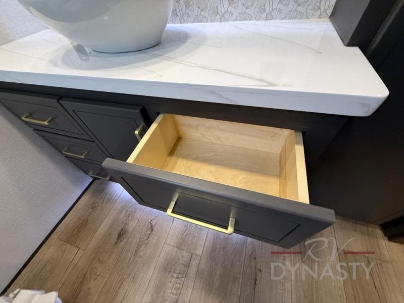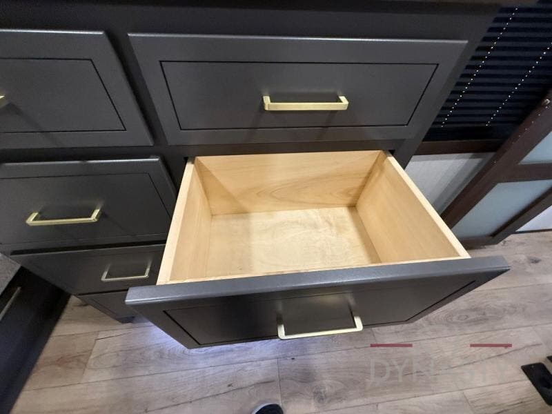 Hop on new adventures with the Forest River Cedar Creek Cottage Fifth Wheels! Each destination fifth wheel features a 101" wide body frame that provides a sturdy foundation for your adventures, while the AlphaPly TPO roof membrane offers superior durability and weather resistance. Plus, the 3M Bonded Sidewalls add an extra layer of protection and strength, and the hydraulic front jacks make setting up camp a breeze. In the luxurious interiors, the vinyl floor covering is easy to clean, and the Vixeinite flush floor slides in the kitchen and living area provide a seamless transition between the floor and the slide-outs. In addition, the 52" ceiling fan in the living room circulates air and adds to the spacious feel, and the kitchen island is a standout feature, boasting a solid surface counter, a flush-mount sink, and a stainless-steel design. You'll feel like you're cooking at home! Finally, the USB ports in the bathroom ensure you can keep your devices charged and within reach, even in the most convenient places.