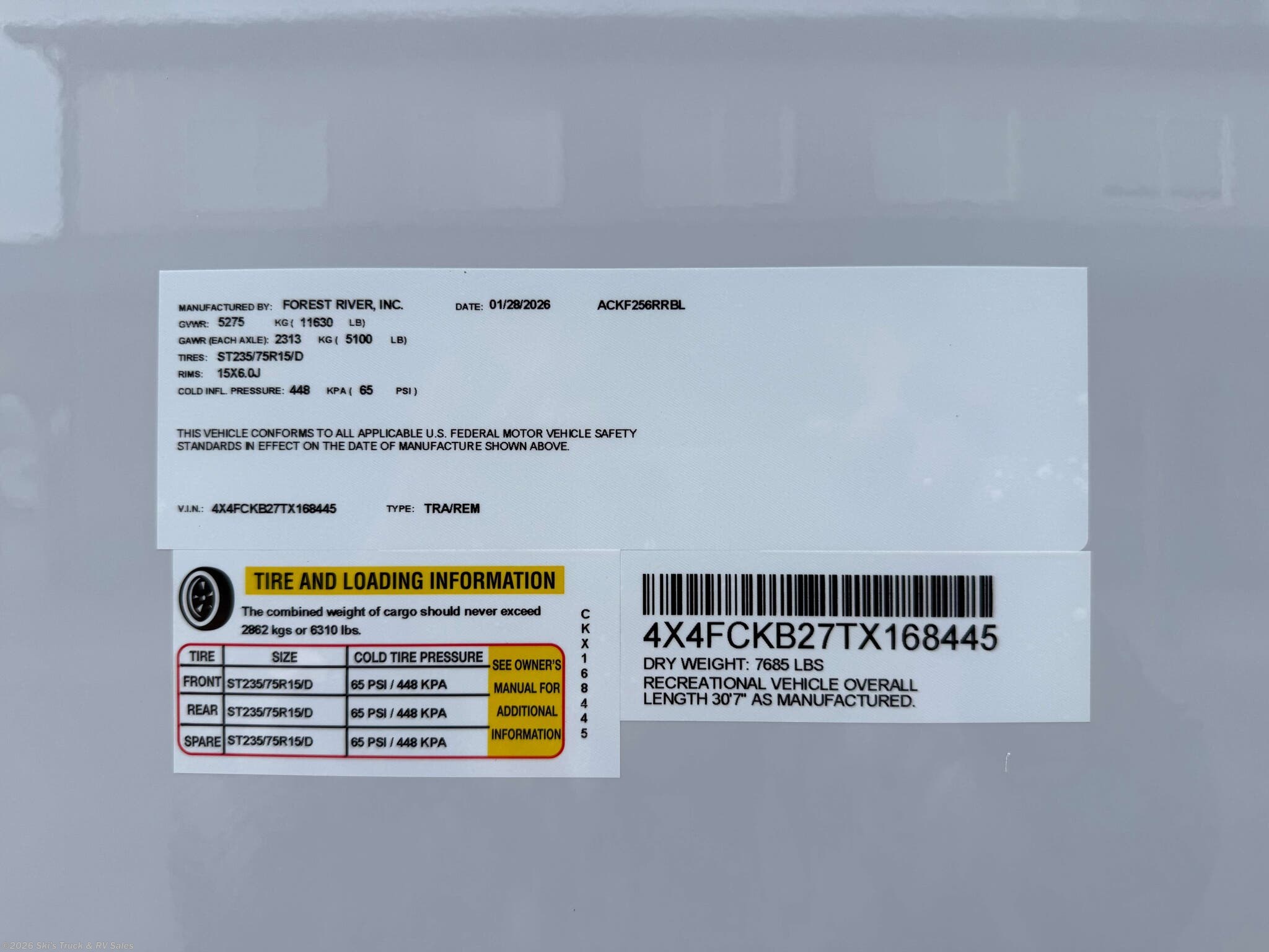 2026 Forest River Cherokee 256RRBL Black Label Fifth Wheel Toy Hauler; 30 Foot; Sleeps 4-6; Lightweight; Hitch Weight: 1430 Lbs.; Dry Weight: 7269 Lbs.; 50 Amp; 49 Gal. Fresh Water Cap.; 38 Gal. Black Water Cap.; 38 Gal. Gray Water Cap.; Power Front Jacks; Manual Stabilizer Jacks; Two 20 Lbs. Propane Tanks; Black Label Limited Package; Large Garage Area: Front 67 In. x 95 In. / Back 92 In. x 80 In.; Party Deck with Screen Wall; Two ACs: 15,000 / 15,000 BTUs; 30,000 BTU Furnace; 10 C.F. (12V) Refrigerator; Convection Microwave; Airfryer; 3-Burner Stove; Solid Surface Countertops; Two TV Jacks; Outside TV Mount; AM/FM; Speakers; USB; Large Pantry; Stainless Steel Farm Sink; Queen Bed (Bedside Power Inverter); Jiffy Sofas; One Bathroom with Shower (Upgraded Shower Head); Washer/Dryer Prep.; 15 Foot Power Awning with LED Lights; Backup Camera; Solar Package (100W); Outside Shower; Exterior Storage; Foldup Steps; Roof Ladder Prep.; Leash Latch; Magnetic Door Holders; Black Tank Flush; Tinted Frameless Windows; Zebra Shades; Climate Package; Fiberglass Sidewalls; Aluminum Wheels; Spare Tire; One Year Limited Warranty; Financing Available; Great Fifth Wheel Toy Hauler for the Price: $38,995. Call Skis Truck & RV Sales at 765-344-1111 or visit us at for more information.