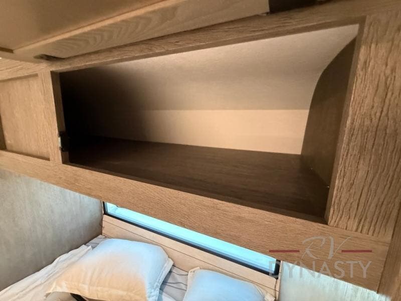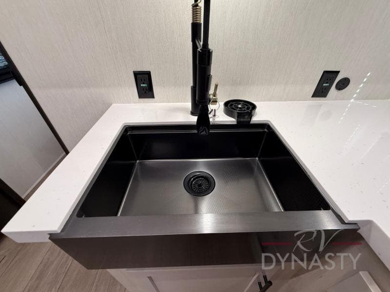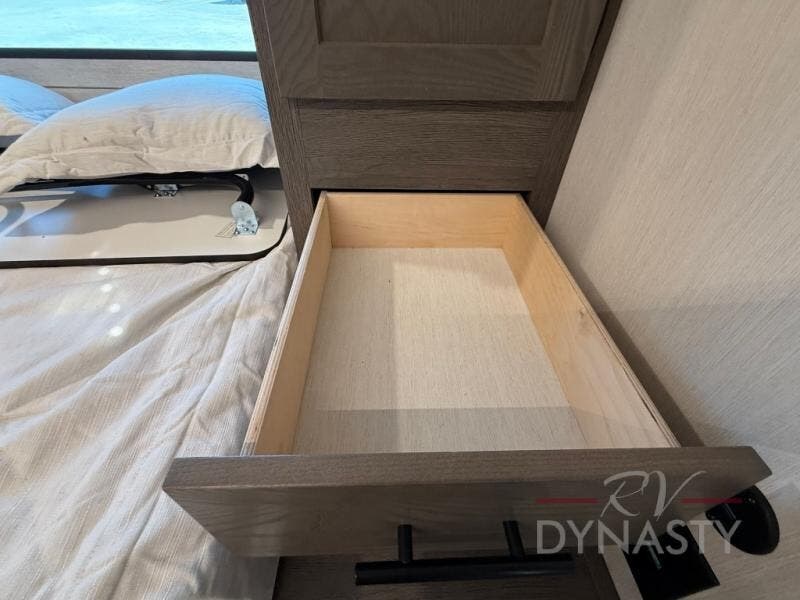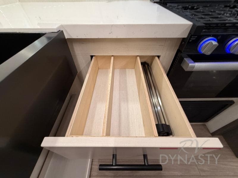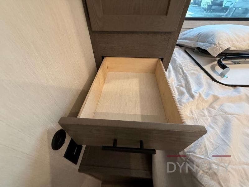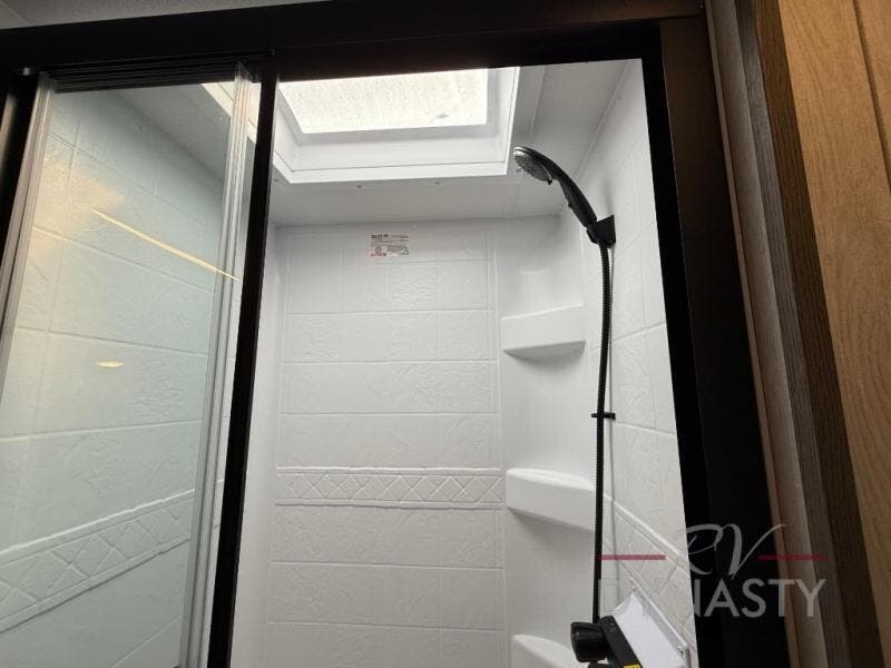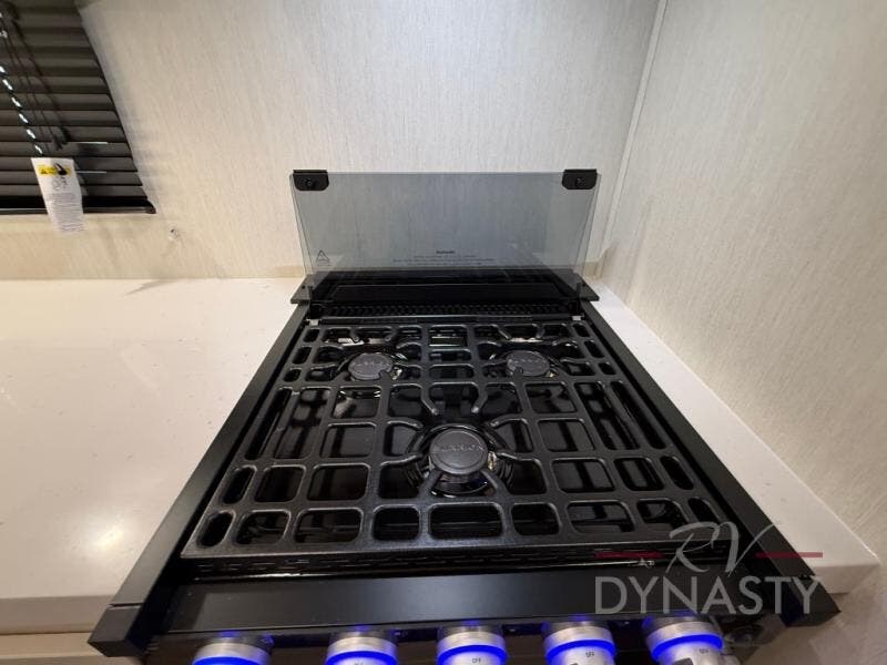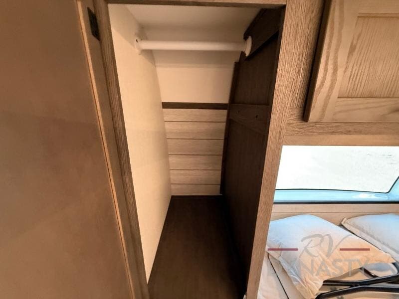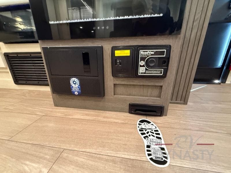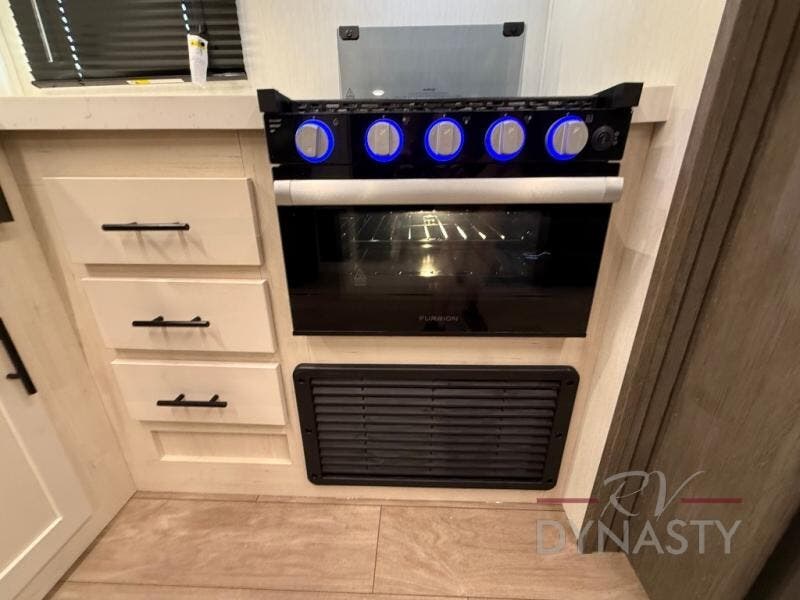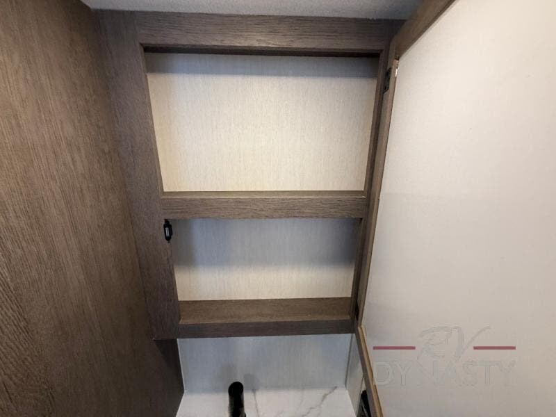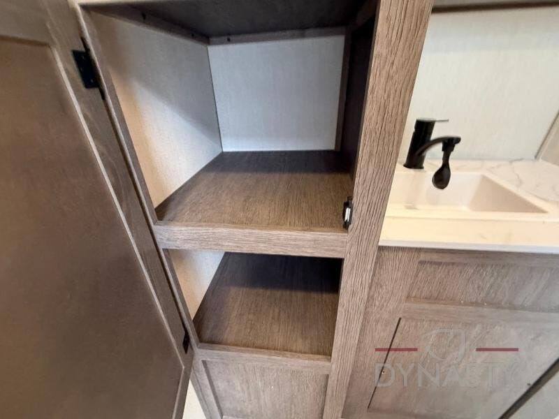Looking for the perfect trailer for two with a spacious bathroom and bedroom? This Alpha Wolf provides a rear oversized bathroom complete with linen storage and a sliding door that saves space and looks great. The front bedroom includes a walk-around queen bed, dual wardrobes, a sliding door plus windows for natural lighting and great views. The main living and kitchen area is spacious as well with a large slide out that includes theater seating with a removable table across from the entertainment center with a fireplace, a 12V residential style refrigerator for lots of cold storage, and a pantry for your snacks and dry goods. You can decide to cook indoors on the three burner cooktop, or head outdoors to cook on the outside kitchen!