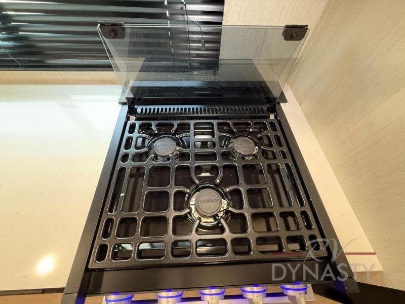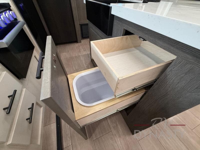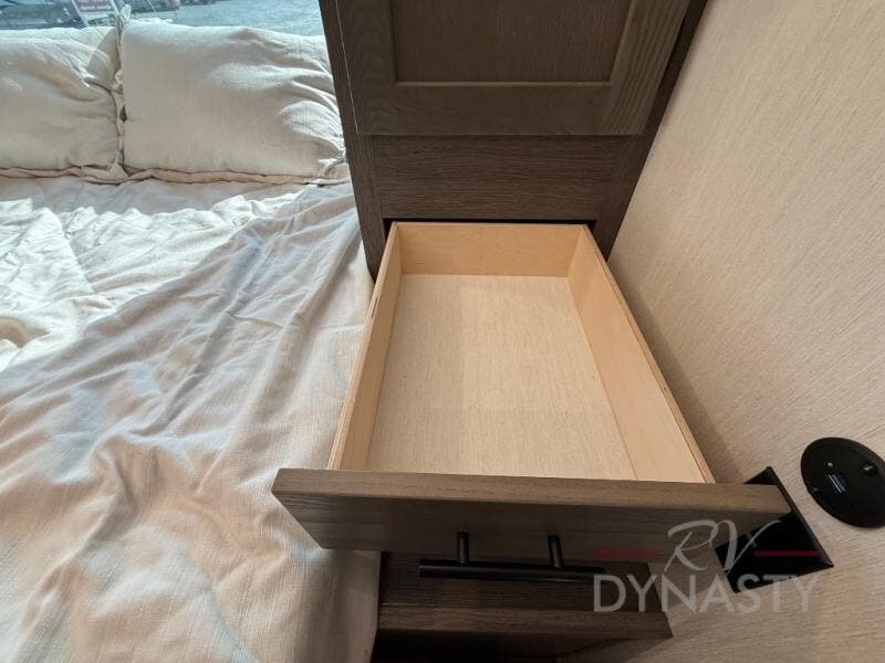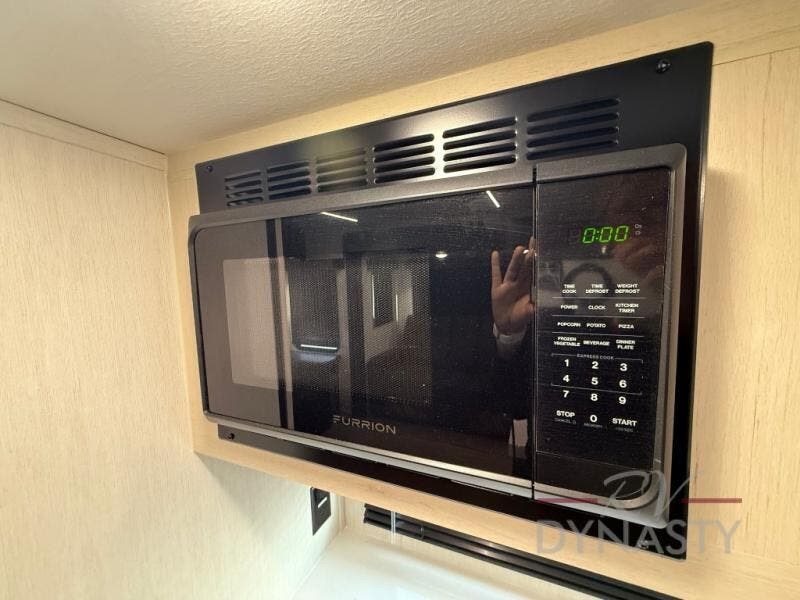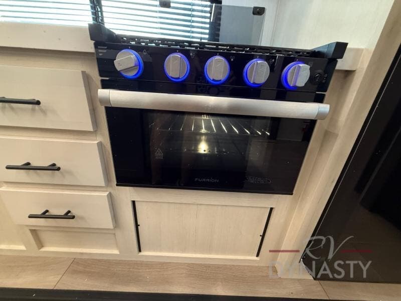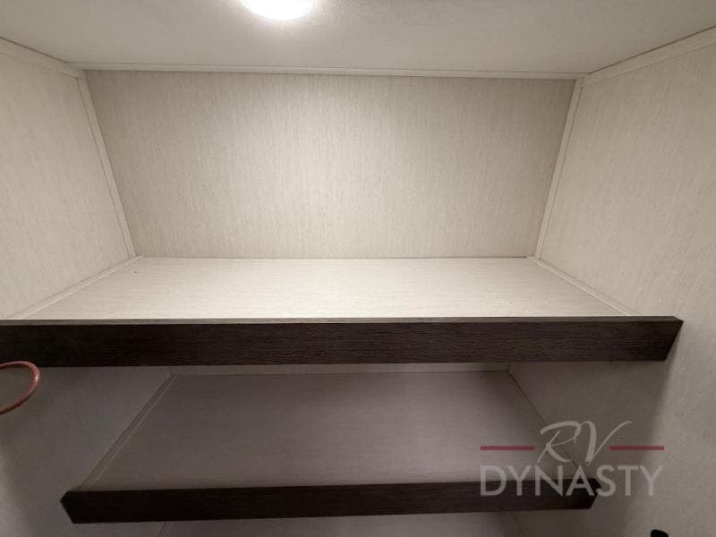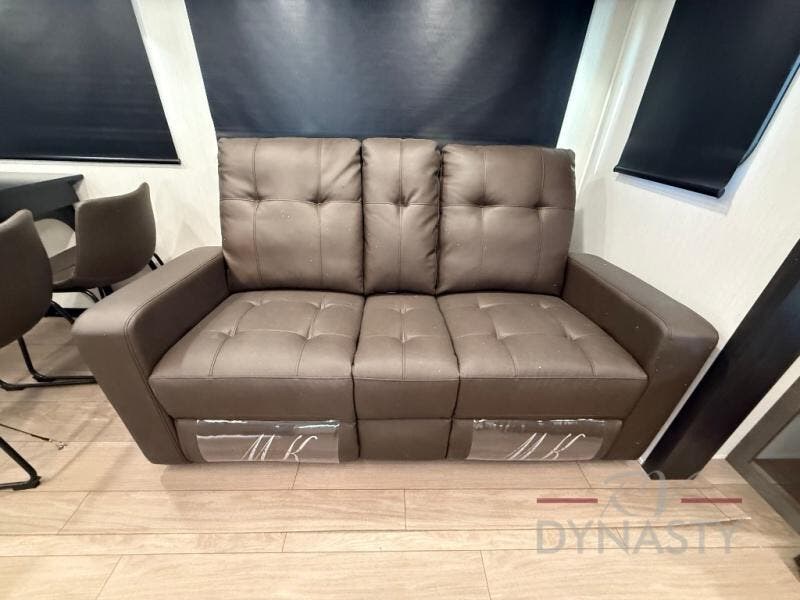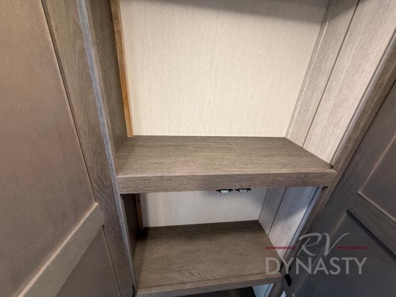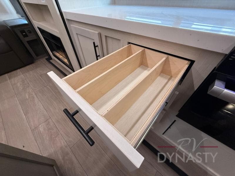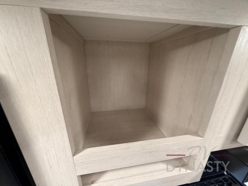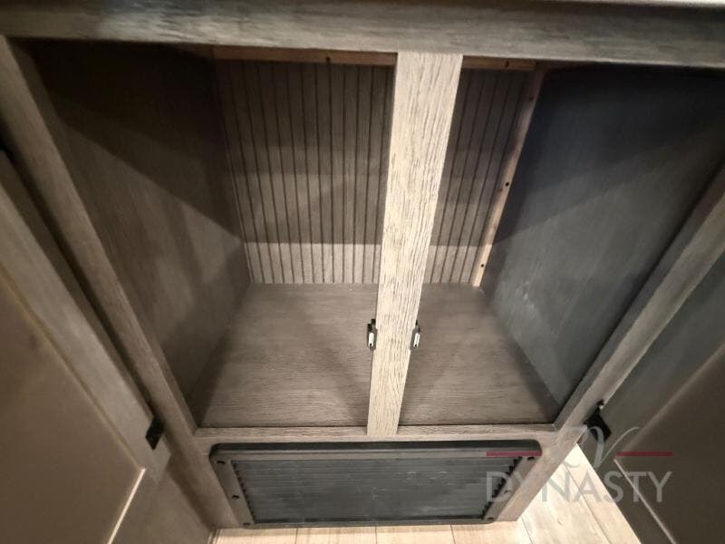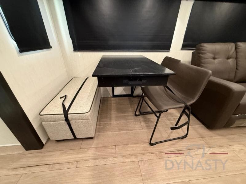 This trailer has it all for maximum comfort and convenience as well as entertainment! The rear living area includes a tri-fold sofa with a rear Pano-Vision window for great views of your campsite, and dual opposing slides widen this area so you can visit with friends. You'll also find theater seating, plus a free-standing table with two chairs and a storage ottoman seat. Enjoy the fireplace on a cool night or when you want a little ambiance while seated inside. Two patio awnings will provide an outdoor living area; just grab your camping chairs from the full pass-through storage. When you want to call it a night, fall quickly to sleep on the queen bed in the front bedroom with easy access to a dual entry bathroom!