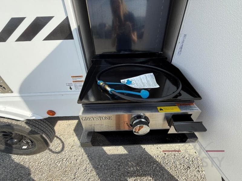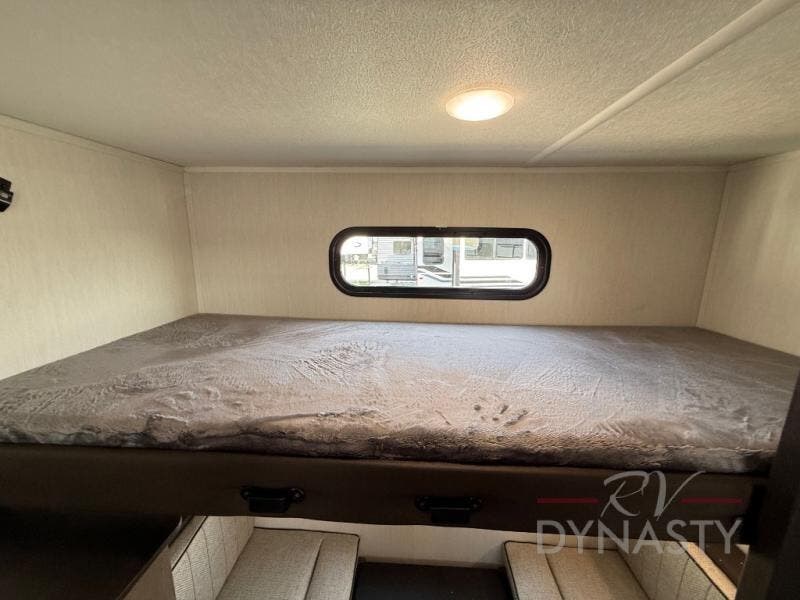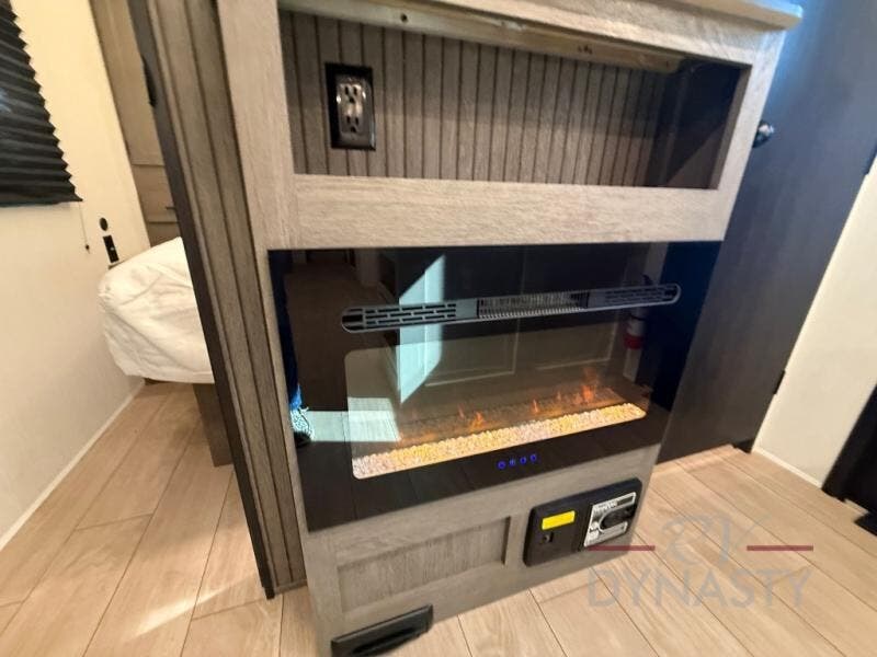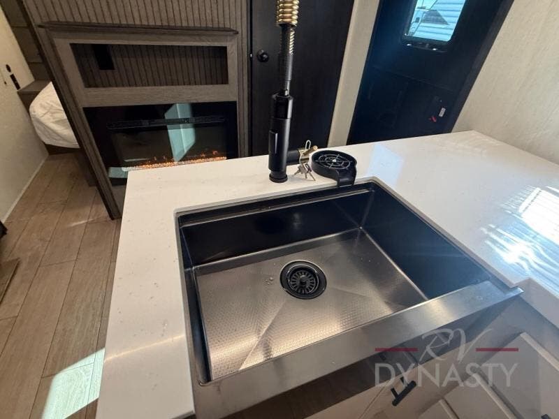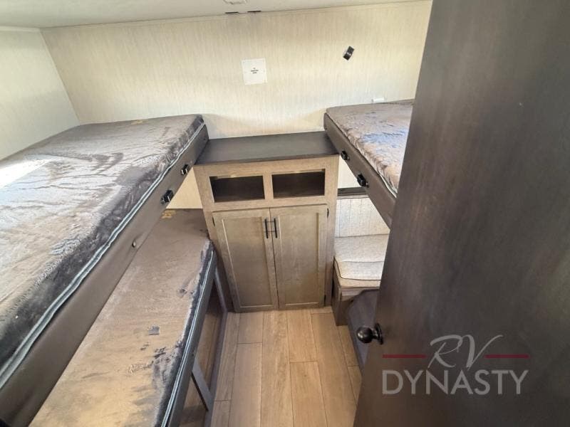 Looking for a spacious travel trailer to sleep nine or ten happy campers? You've found it in this Cherokee Alpha Wolf model with a handy outside kitchen, a bunkhouse with a dinette, a front private bedroom, and a large slide out! The main living and kitchen area has a U-shaped dinette to utilize as a dining table, game table, work station, and/or an extra sleeping space. There is also a jackknife sofa for seating, TV watching, or sleeping. From any seating area you can easily view the entertainment center and fireplace which is centered in the unit with doors on either side to the front private bedroom. You will also find a nice pantry and full kitchen amenities including a large sink, and residential-style refrigerator allowing you to easily create meals for your hungry crew. The exterior provides an 18' awning for an outdoor living area over the outside kitchen, and there is ample exterior storage for all of your camping gear like camp chairs, outside games, rugs, and more.