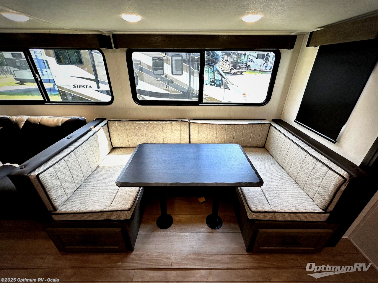 This stunning travel trailer is designed to provide comfort, luxury, and excitement on the open road. Starting with the two flip-up top bunk beds, perfect for kids or adults alike. The tri-fold sofa and jackknife sofa offer additional sleeping space or comfortable spots to lounge, making it easy to accommodate guests. The walk-through bathroom provides convenience and comfort, while the entertainment center with fireplace is a hub for fun and relaxation. Cozy up by the fire on chilly evenings and enjoy quality time with loved ones. The U-shaped dinette is ideal for meals or socializing, and the pantry, 12V refrigerator, microwave, and overhead cabinet ensure that you're well-equipped for cooking and storing food on the go. Featuring a spacious queen bed, convenient nightstands, stylish wardrobes, and overhead head cabinets for storing your belongings, this peaceful sanctuary is the perfect place to rest and recharge after a day of adventure.