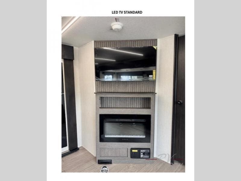 It will be so easy to find comfort in this travel trailer! The dual opposing slides in the combined kitchen and living room will create an open floorplan you are sure to love. There is a rear tri-fold sofa, theater seating across from an entertainment center, plus a table with chairs and a storage ottoman seat to keep games organized. The chef of your group will love having extra counter space provided by the kitchen island, and there is a hutch to keep nice dishes stored away. Up front, the private bedroom includes a king bed slide out, dual wardrobes and a dresser, plus a front sun bench where you can sit to pull your hiking boots on. There is even a wardrobe with washer and dryer prep if you choose to add those appliances!