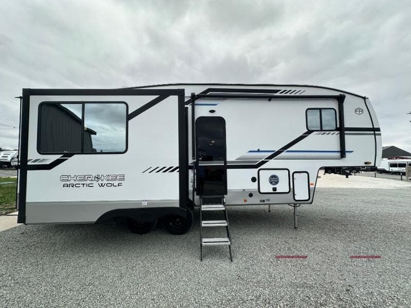 You'll have the very best time tackling outdoor adventures with the Forest River Cherokee Arctic Wolf fifth wheel! Each model has been constructed with a “ToughBend” rigid skirt metal design, Leash Latch pet safety technology, an outside shower with hot/cold water, and a 1x engineered wood “SuperTruss” roof structure with 3/8" decking for added durability. There is also an automatic leveling and stabilization system, slam latch storage doors with "Safety Stay" magnets, plus 12V heat pads on all holding tanks with help withstand colder temperatures. Inside, you'll love the solid surface kitchen countertops with underlighting, along with a carpetless floor design, and fully adjustable, slow rise, blackout roller shades. The on-demand tankless hot water heater will provide endless hot water and the central A/C unit with Quick Cool will ensure your comfort during those hot summer camping months. There are many more stand-out features found on these fifth wheels; check them out!