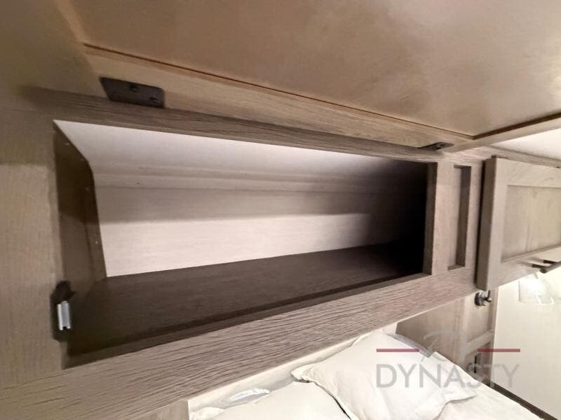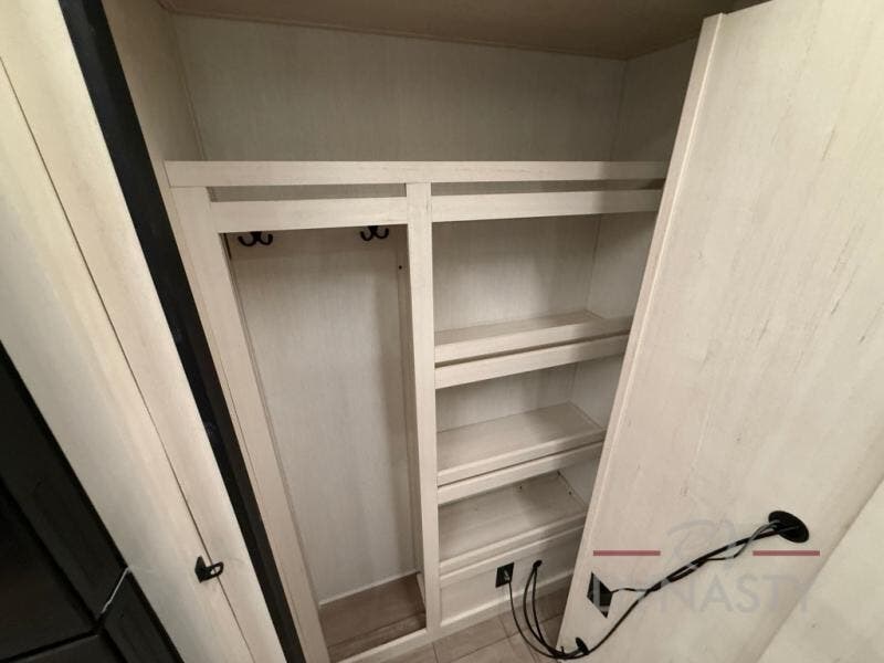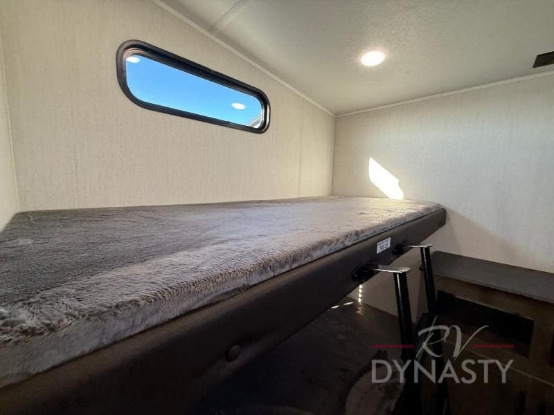 Invite the whole gang with this spacious fifth wheel in tow! The rear private bunkhouse includes triple bunks, a dinette, plus a TV stand with a dresser to keep your space tidy. You'll find a queen bed in the front private bedroom, along with two wardrobes and an overhead cabinet for books. Everyone can meet in the combined kitchen and living area to relax on the tri-fold sofa, play a game around the U-shaped dinette, or just enjoy the fireplace! The chef of your group will have an interior kitchen to cook meals each day, or they can head outside to use the outdoor kitchen with a refrigerator. There is also a 20' patio awning and outside storage to keep hiking gear packed away.