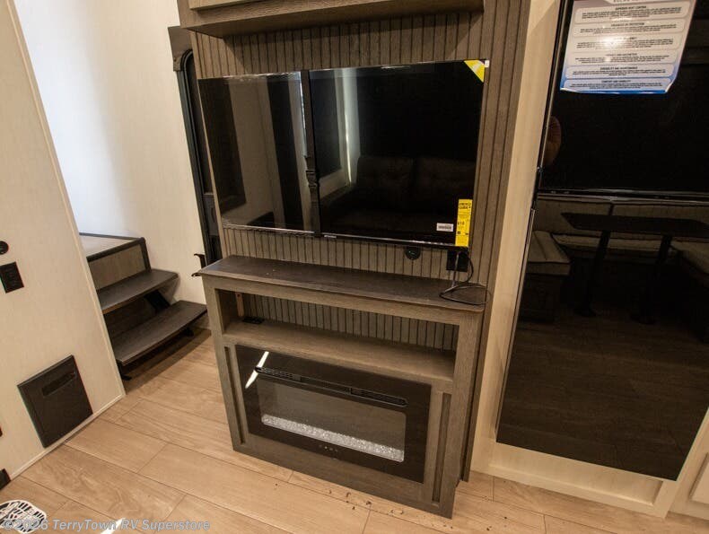Let the fun times begin with the purchase of this Cherokee Arctic Wolf fifth wheel! You'll have loads of sleeping space for ten tired travelers with the front private bedroom, rear private bunkhouse, U-shaped dinette, and tri-fold sofa. You'll also have excellent storage space with the bunkhouse wardrobe, large walk-in pantry next to the entry door, and the outside storage areas. The large slide in the main living area offers more living space, and the fireplace will make it feel more like home.