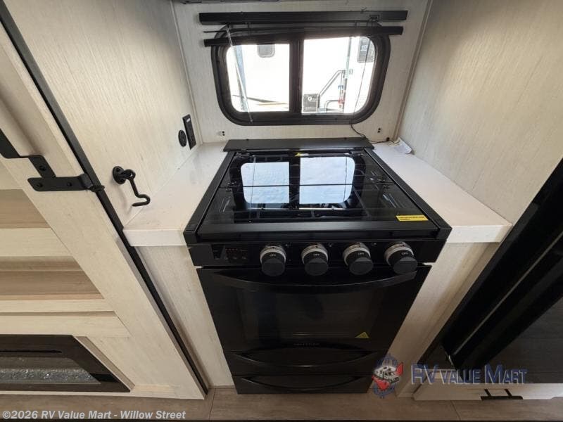 This quad-slide layout is set up for long stays and easy routines. The kitchen centers around a beautiful kitchen island for prep, the free-standing range is perfect for making full-size meals, and clean-up is a breeze with the built-in dishwasher. Across the living/kitchen zone you’ll find seating oriented to the entertainment wall and an LED TV, so movie nights don’t fight the cook space. Up front, the suite’s king bed slide faces a bedroom fireplace, with deep hanging space and drawers to keep wardrobes organized. Outside, the dual entry design improves campsite flow, and the triple-awning coverage stretches usable patio space. There is also more space for kids or guests in the upper loft!
