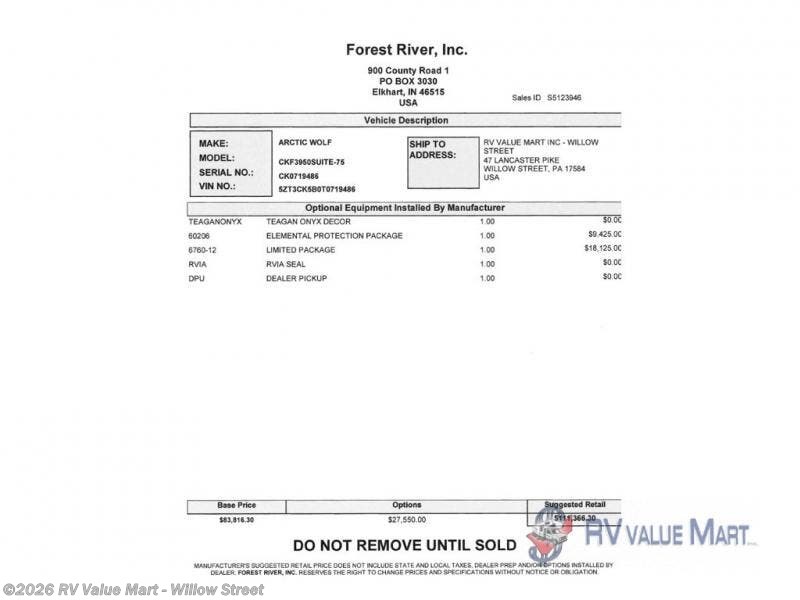 Request More Info on this 2026 Forest River Cherokee Arctic Wolf 3950SUITE Offered for sale by RV Value Mart - Willow Street
