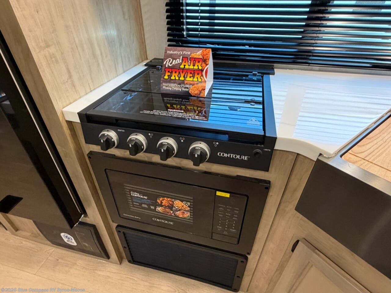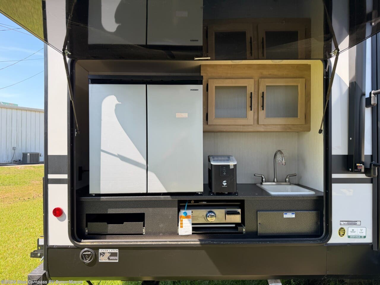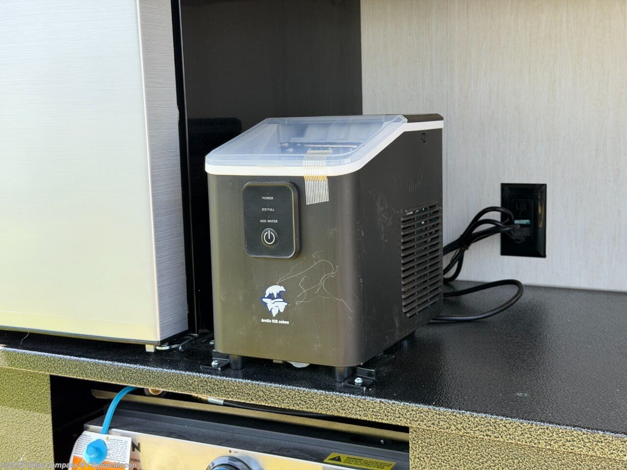 How does having a master bedroom for yourself and a private bunkhouse for your guests sound? This innovated design gives everyone their own space at night with a full queen loft bed, a 36" bunk bed and a walk-around queen bed, plus the U-shaped dinette and sofa provide more sleeping space. Everyone will enjoy the fireplace on chilly nights and the cook will love all the kitchen appliances including the large pantry and farm sink. The outdoor bar and grill with a 5.6 cu. ft. refrigerator and a pull-out cooktop, a sink and large storage areas are a must have when you love to be outside.