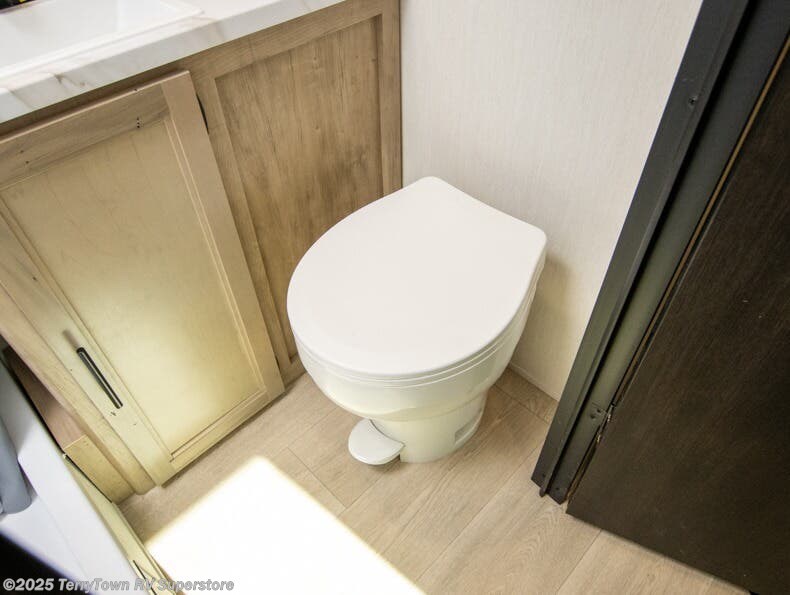 You will undoubtedly love this Cherokee Grey Wolf toy hauler! Because of its ability to have up to 15' 2" of cargo space, you can easily load up the ramp door and head out to your outdoor toy land, and you can bring much more than just your toys since this trailer also comes with exterior storage, a bedside wardrobe, overhead cabinets, a refrigerator, and a kitchen pantry. The full bathroom is another feature that is going to allow you to experience a true getaway since you won't need to find public facilities to use while you're gone, and the USB charging stations will allow you to charge your phone inside while you're outside playing.