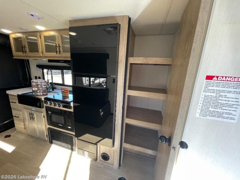 You will undoubtedly love this Cherokee Grey Wolf toy hauler! Because of its ability to have up to 15' 2" of cargo space, you can easily load up the ramp door and head out to your outdoor toy land, and you can bring much more than just your toys since this trailer also comes with exterior storage, a bedside wardrobe, overhead cabinets, a refrigerator, and a kitchen pantry. The full bathroom is another feature that is going to allow you to experience a true getaway since you won't need to find public facilities to use while you're gone, and the USB charging stations will allow you to charge your phone inside while you're outside playing.