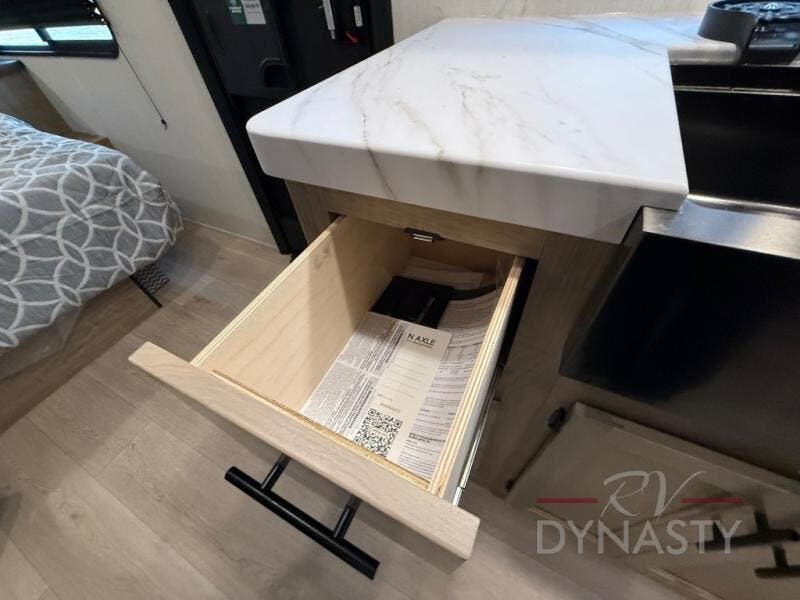 Time spent at the campground in this well designed travel trailer will be time well spent! The front bedroom includes a walk-around RV king bed, dual bedroom wardrobes plus USB ports to charge your phone or laptop. You can whip up breakfast in the modern kitchen that includes an air fryer, then dine around the U-shaped dinette with a panoramic window. This area can also double as sleeping space for one to two guests as well! A pantry will let you stock up on snacks and the TV mount means you can bring along a television if you want to enjoy movie nights. There is also a full bath with a tub/shower where you can freshen up each day!