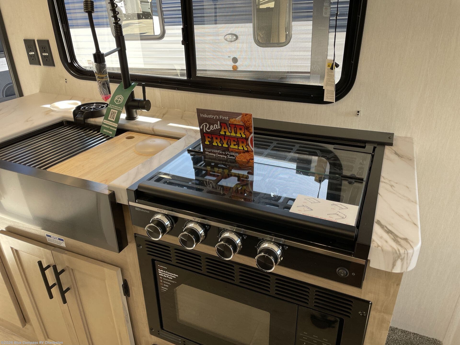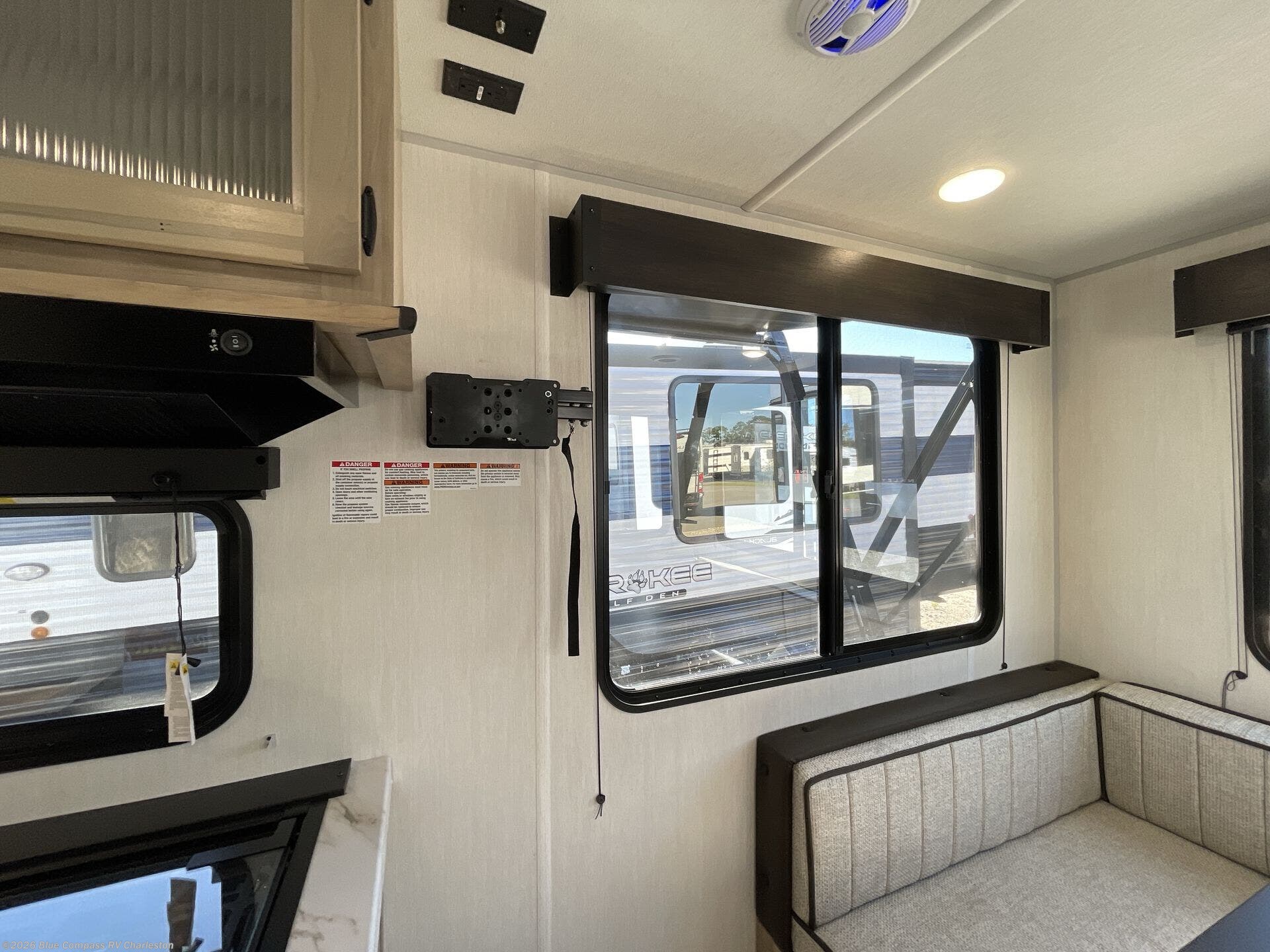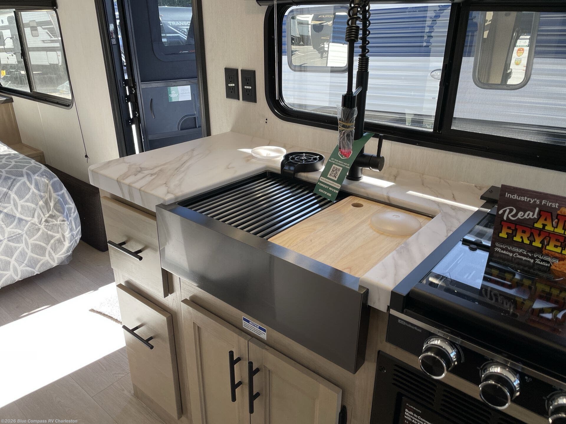 Time spent at the campground in this well designed travel trailer will be time well spent! The front bedroom includes a walk-around RV king bed, dual bedroom wardrobes plus USB ports to charge your phone or laptop. You can whip up breakfast in the modern kitchen that includes an air fryer, then dine around the U-shaped dinette with a panoramic window. This area can also double as sleeping space for one to two guests as well! A pantry will let you stock up on snacks and the TV mount means you can bring along a television if you want to enjoy movie nights. There is also a full bath with a tub/shower where you can freshen up each day!