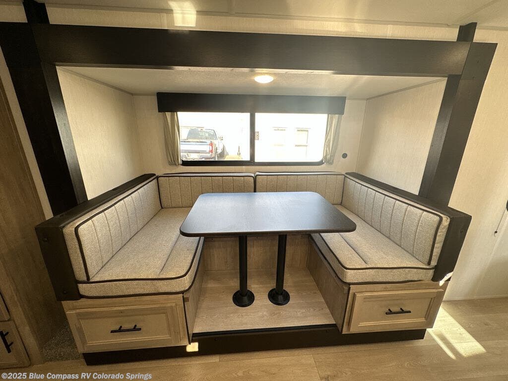You will love the space provided in this dual entry Cherokee Grey Wolf travel trailer that has double-size bunks! The rear entry door leads right into the full bath allowing easy access from outside when you need to use the bathroom while you're enjoying the great outdoors. The large U-shaped dinette slide will not only seat everyone comfortably for a meal or a game, but since it also slides out, it opens up the interior even more to give you plenty of space for foot traffic. For all of your outdoor gear, you will find the outside storage compartments handy for stowing away your things when not in use. While the kids enjoy their bunk beds, you will enjoy a good night's rest in your RV king bed with wardrobes on either side up in the front private bedroom!