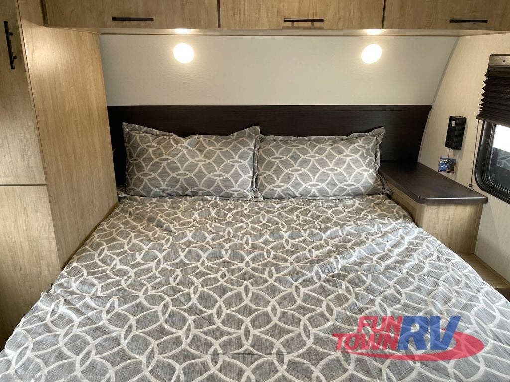 This Cherokee Grey Wolf travel trailer is perfect for your small family and will leave you planning your next outing before you are back from your current weekend away! You will find all of the comforts you need with plenty of livable space including a U-shaped dinette slide. There is also a sofa for more seating when company arrives, and there are end tables on either side to prevent spills. A spacious walk-through bath leads to a front private bedroom where you will enjoy a great night's rest on a comfortable RV king bed. You will find ample storage for clothing in the wardrobes that are above handy nightstands for your personal things.
