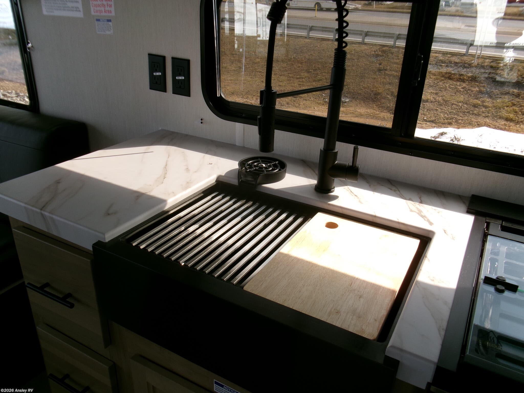 Take this Cherokee Grey Wolf toy hauler out to the campground of your choice for loads of outdoor fun! Create delicious dinners with the fabulous features found in the kitchen, like air fryer and residential farm-style stainless steel sink. For a comfortable night of rest, head to the front master suite where you will find an RV king bed, dual wardrobes, and a TV mount. You will even be able to host any neighbors that drop by with the fold-down sofas and removable table.