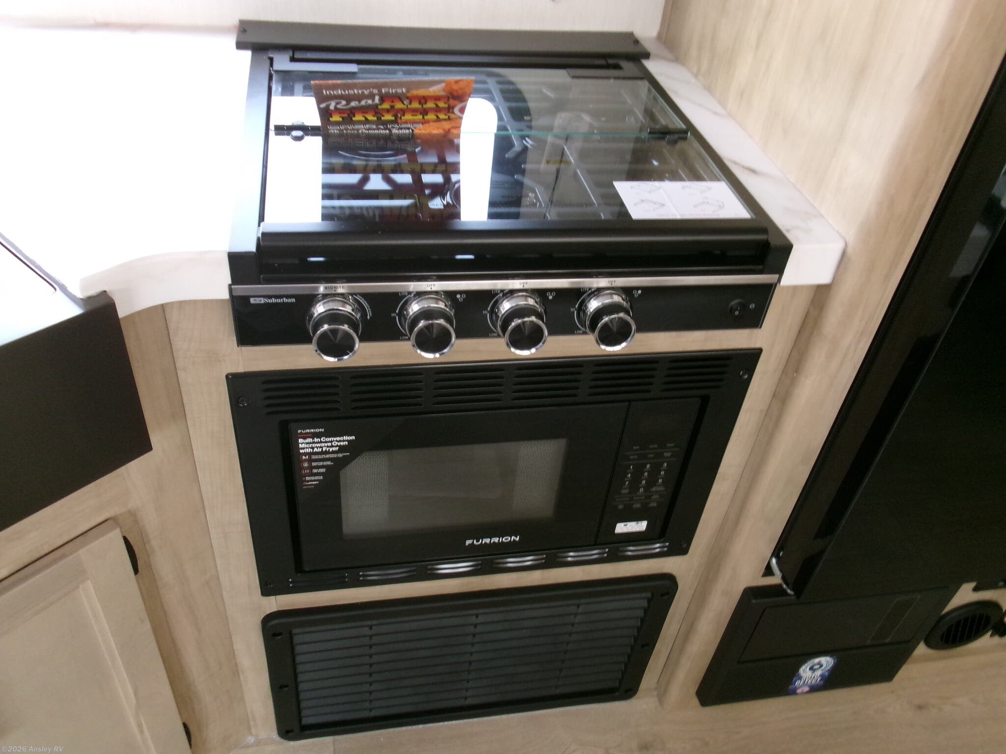 The Cherokee Grey Wolf is equipped with all the essentials to make your travel experience enjoyable and hassle-free. Inside, you'll find a fully functional kitchen with a microwave, oven, refrigerator, and a stove top burner, enabling you to prepare meals on the go. Additional amenities include a fireplace for cozy evenings, medicine cabinets for storage, and roof vents for proper ventilation. The interior design features modern touches and a neutral color scheme to enhance comfort and style.