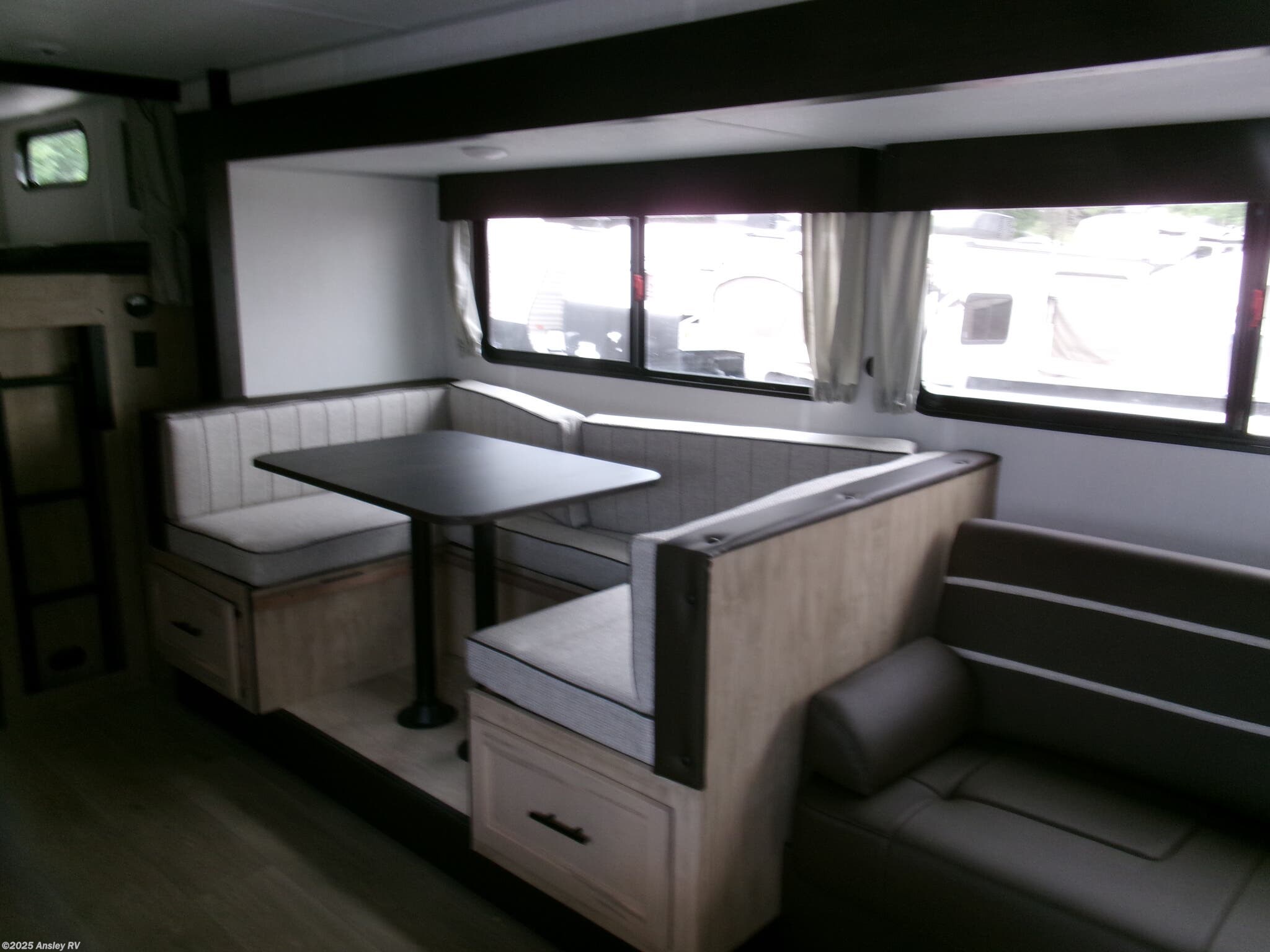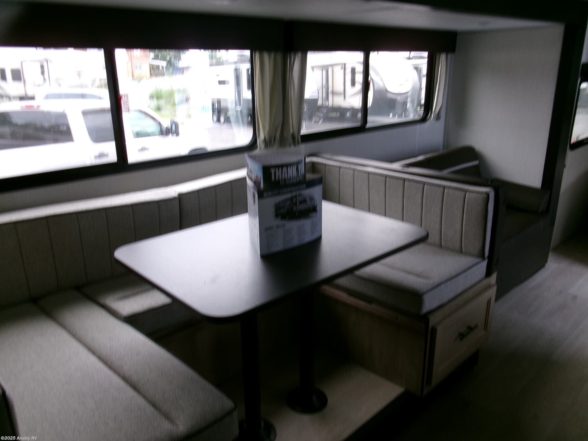 With a length of approximately 31 feet 9 inches and a width of 8 feet, this travel trailer provides ample space for up to 10 guests to sleep comfortably. The floor plan features a convenient slideout, increasing living space when parked, and a cozy queen-sized bed for restful nights. The versatile U-Shaped dinette offers a perfect area for dining, socializing, or entertaining guests.