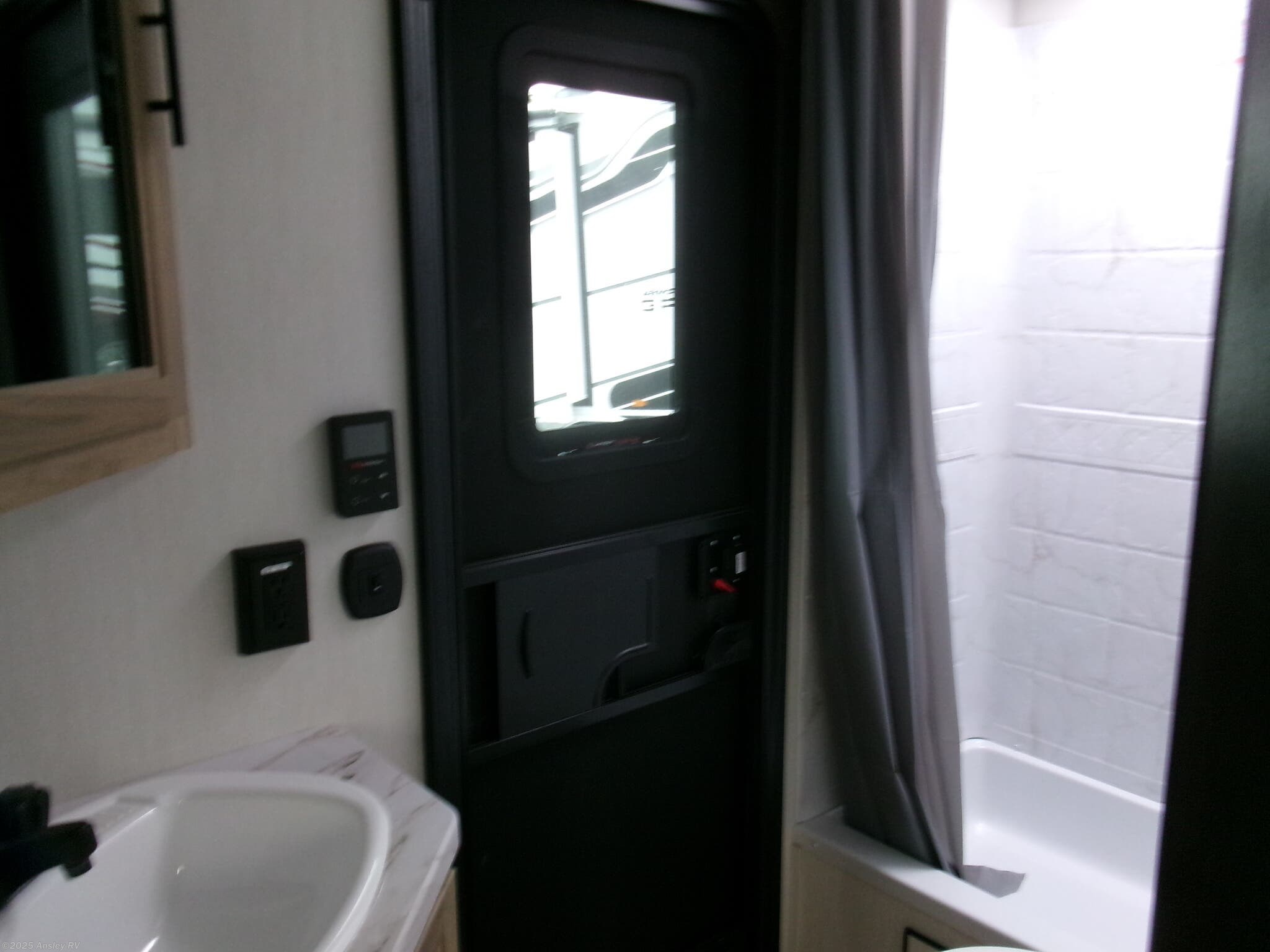 The Cherokee Grey Wolf is equipped with all the essentials to make your travel experience enjoyable and hassle-free. Inside, you'll find a fully functional kitchen with a microwave, oven, refrigerator, and a stove top burner, enabling you to prepare meals on the go. Additional amenities include a fireplace for cozy evenings, medicine cabinets for storage, and roof vents for proper ventilation. The interior design features modern touches and a neutral color scheme to enhance comfort and style.