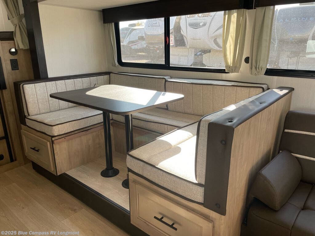 Come on inside this Cherokee Grey Wolf travel trailer and experience the convenience of a smooth flow of traffic in and out with two entry doors. The rear door leads into a full bath which is great for accessibility. Once inside, you will notice the large U-shaped dinette and the sofa which sit on the slide and create a spacious footprint for moving about, as well as great places to play games and socialize with your friends and family. A walk-in pantry provides plenty of storage allowing you to stock up on your favorite snacks and dry goods for your family adventure. At night, there is sleeping space for everyone between the double-size bunks and the RV king bed, plus the furniture.