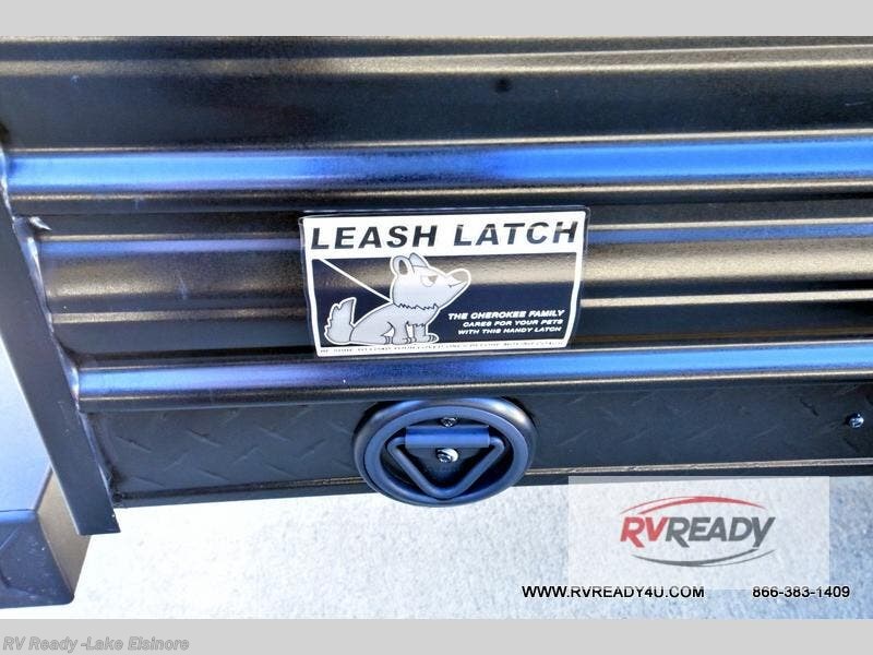 Come on inside this Cherokee Grey Wolf travel trailer and experience the convenience of a smooth flow of traffic in and out with two entry doors. The rear door leads into a full bath which is great for accessibility. Once inside, you will notice the large U-shaped dinette and the sofa which sit on the slide and create a spacious footprint for moving about, as well as great places to play games and socialize with your friends and family. A walk-in pantry provides plenty of storage allowing you to stock up on your favorite snacks and dry goods for your family adventure. At night, there is sleeping space for everyone between the double-size bunks and the RV king bed, plus the furniture.