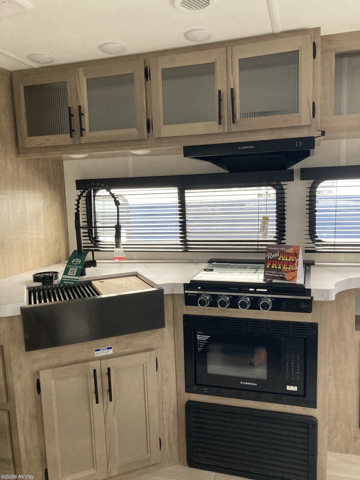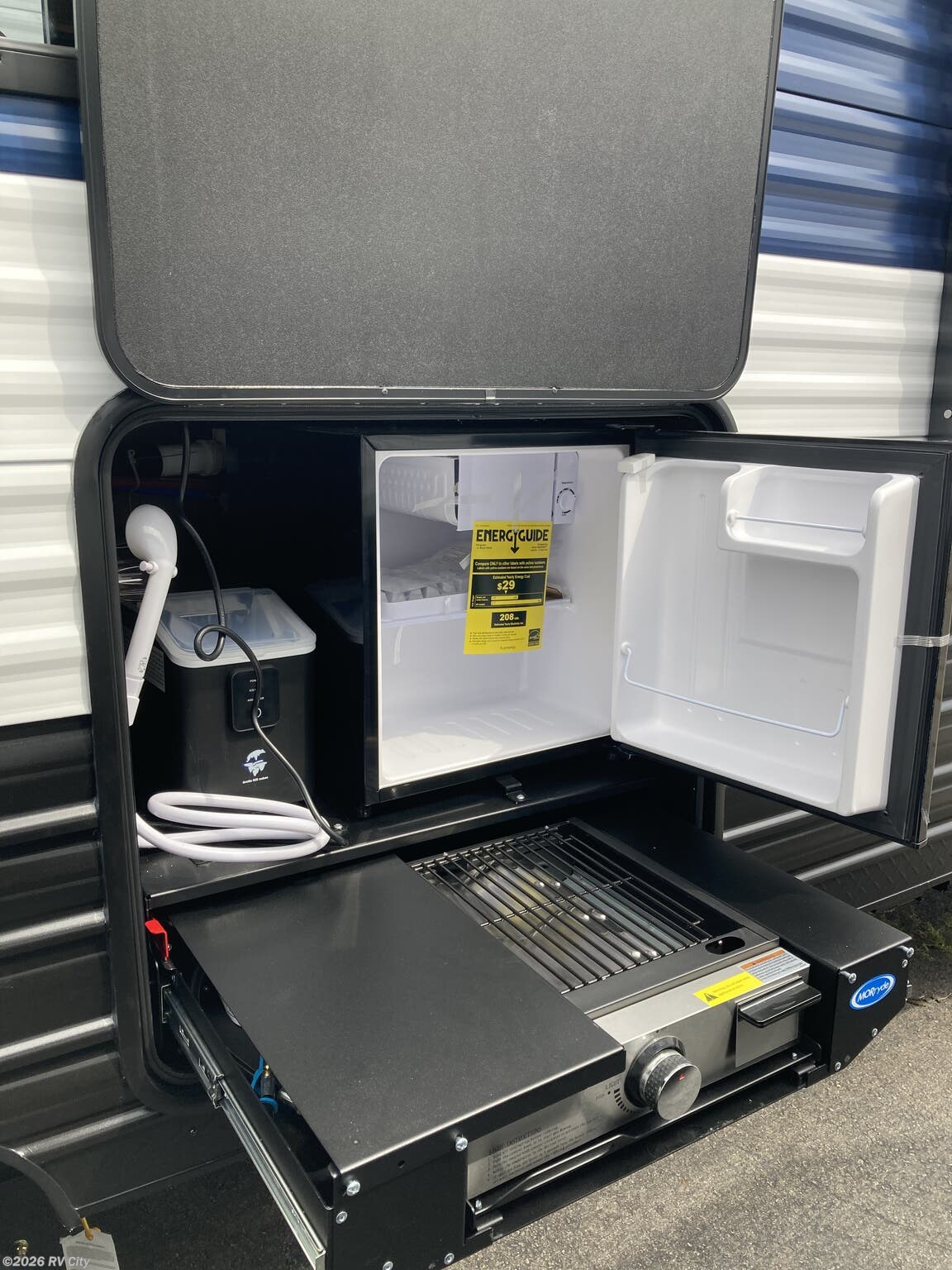 The Cherokee Grey Wolf 26LK by Forest River offers a spacious and luxurious layout in a compact 32-foot package. The living room and full bathroom provide comfort and convenience, while the rear bedroom, featuring a king-size bed and ample wardrobe space, offers a peaceful retreat. The well-equipped kitchen, with a large 12-volt refrigerator, air fryer combo microwave, and utility sink, is perfect for cooking and entertaining. Experience the comfort and style of the Cherokee Grey Wolf 26LK!