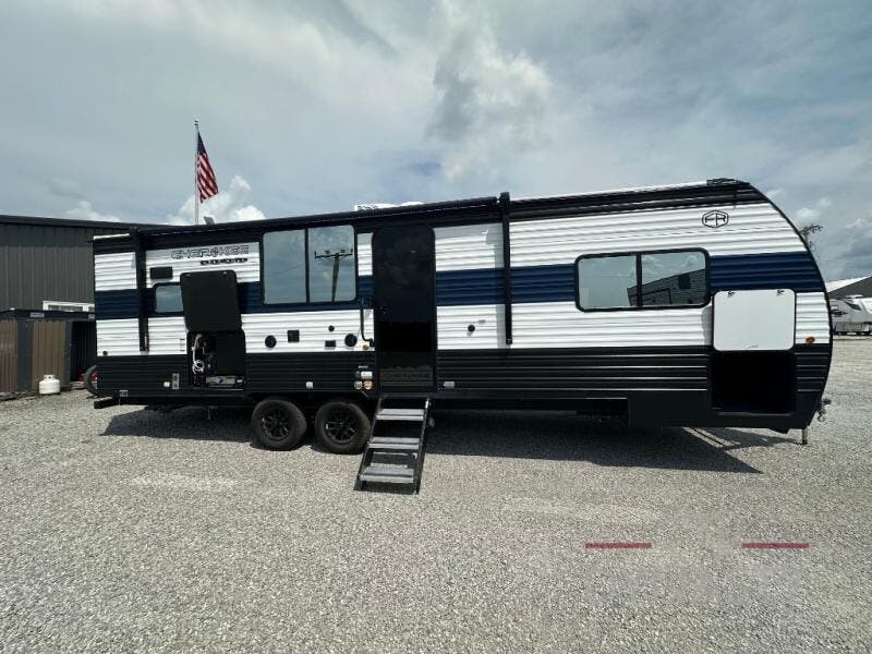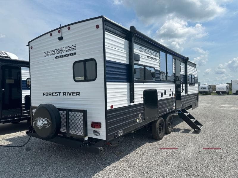 Whether it's a journey that will take you to new locations or a tried-and-true getaway to that favorite and memorable destination, the Forest River Cherokee Grey Wolf travel trailers and toy haulers are going to make the trip worth it every single time! You can travel in confidence with the premium wheel package, seamless roofing membrane with heat reflectivity, Power Gear frame technology with space-saver rail design, and Cherokee back-up camera system. The Cherokee Grey Wolf's interior is highly attractive with its stainless steel kitchen suite package and premium bedding ensemble and comforter. You will also find a black waste tank flush-out kit, an outside shower with hot and cold water, an armored underbelly tank enclosure, and an RV grill quick connect.