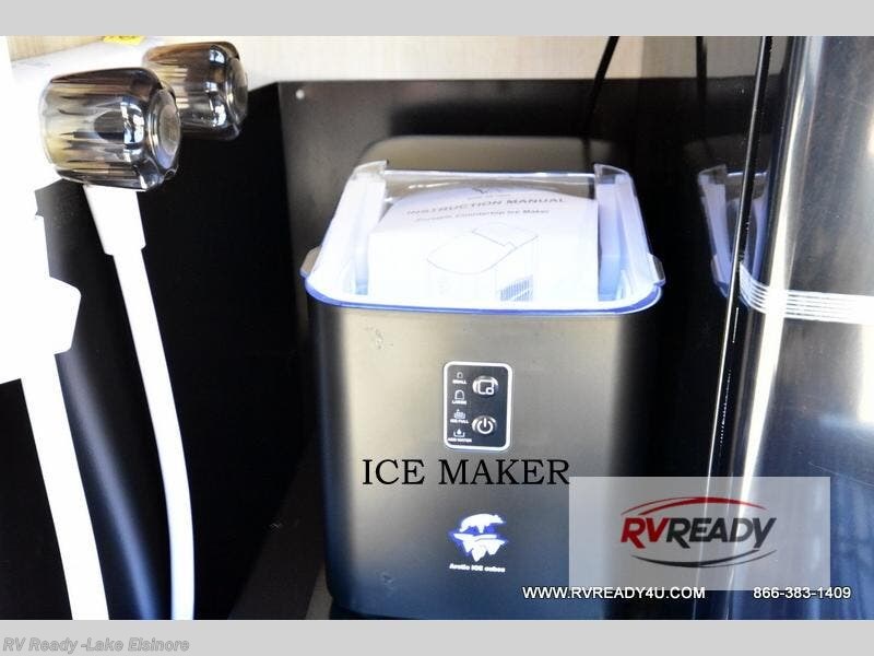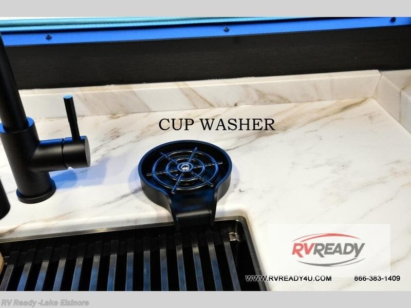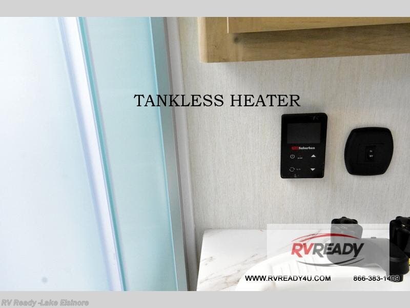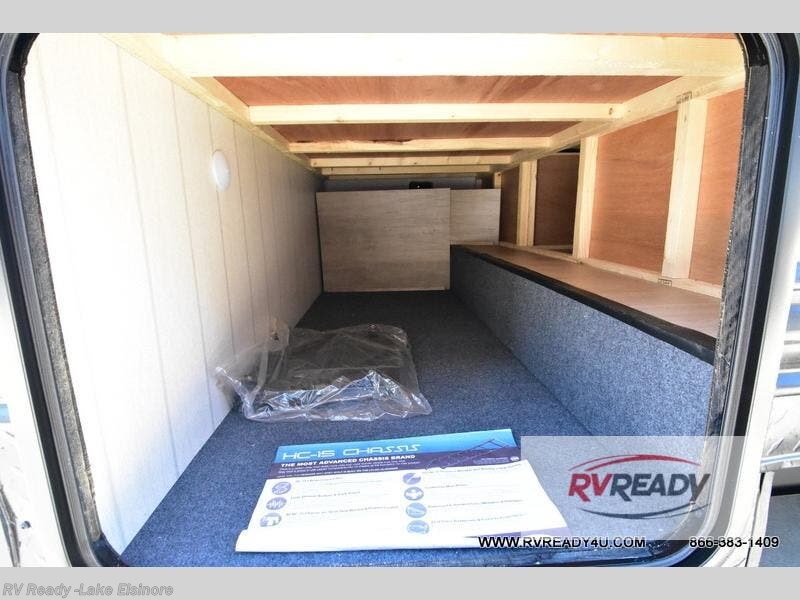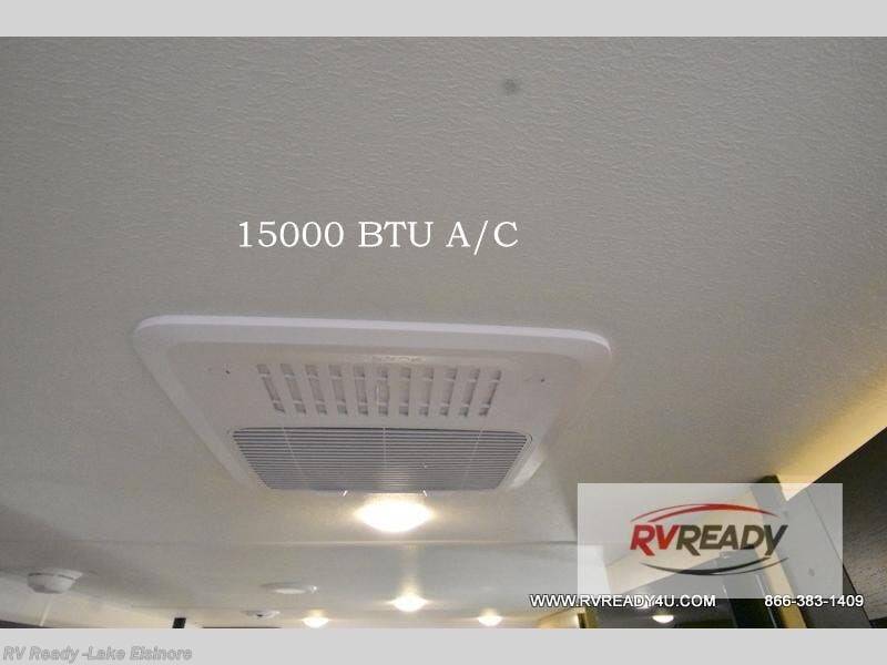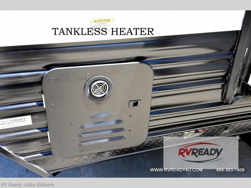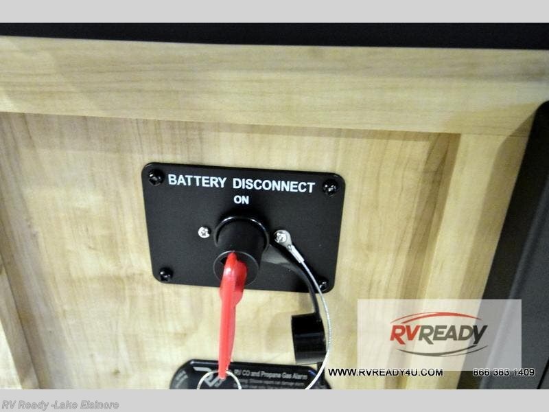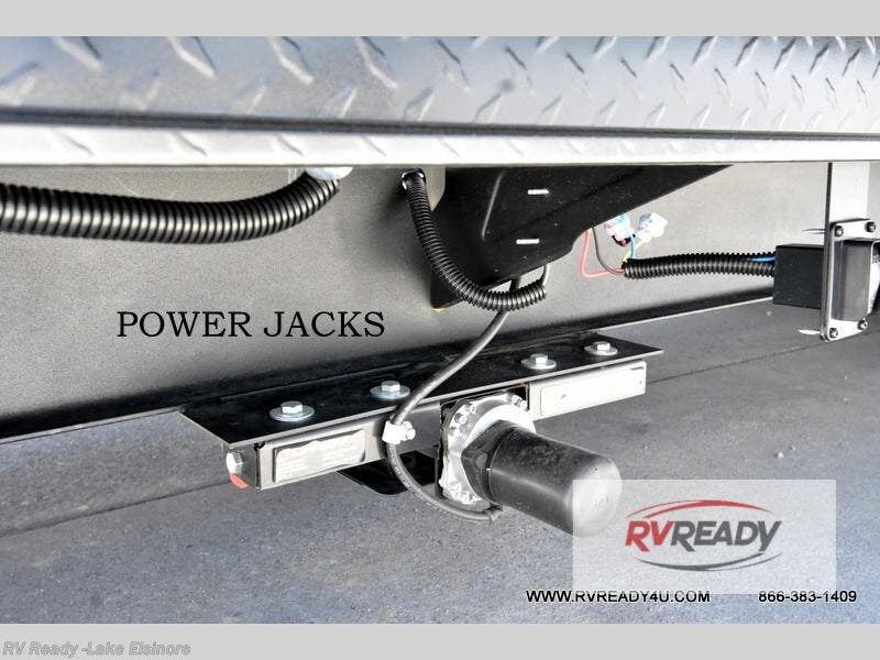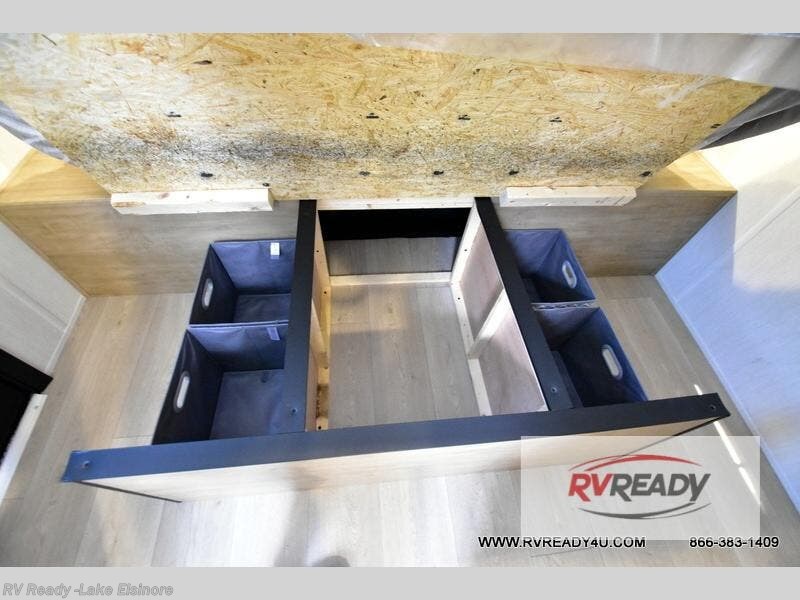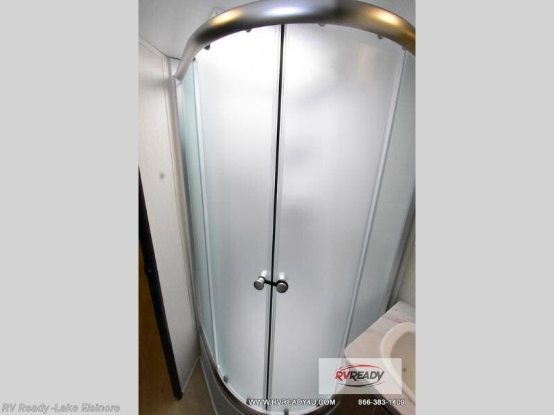 Since this travel trailer features dual entry doors, you can enter in through the rear master bedroom or the front kitchen; how convenient! The kitchen includes ample counter space and all the appliances to prep meals, along with a pantry up front and a hidden pantry behind the fireplace. Your crew can get comfortable on the sofa or play a game around the U-shaped dinette, although you may just find yourselves outdoors since there is an outside kitchen and a power awning with LED lights. The dual entry bath will let you enter in through the main living area, plus it has a private entrance into the bedroom. Here, you'll find an RV king bed, a wardrobe for your things, and USB ports to keep your electronics charged!