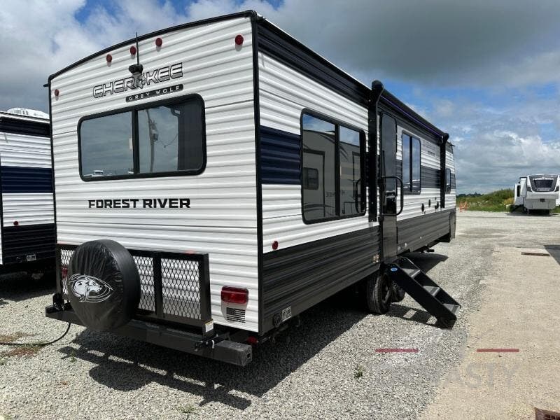 Whether it's a journey that will take you to new locations or a tried-and-true getaway to that favorite and memorable destination, the Forest River Cherokee Grey Wolf travel trailers and toy haulers are going to make the trip worth it every single time! You can travel in confidence with the premium wheel package, seamless roofing membrane with heat reflectivity, Power Gear frame technology with space-saver rail design, and Cherokee back-up camera system. The Cherokee Grey Wolf's interior is highly attractive with its stainless steel kitchen suite package and premium bedding ensemble and comforter. You will also find a black waste tank flush-out kit, an outside shower with hot and cold water, an armored underbelly tank enclosure, and an RV grill quick connect.
