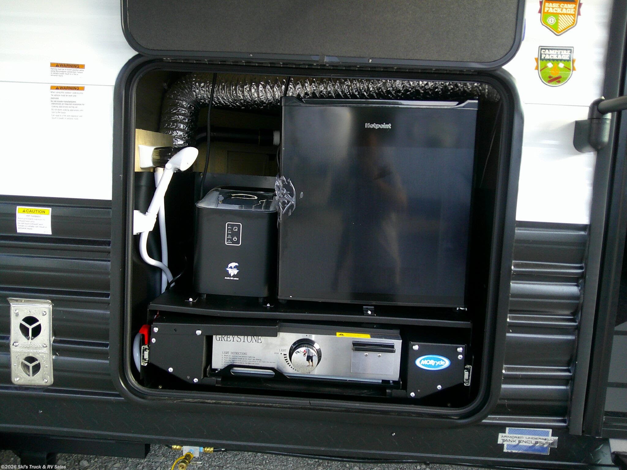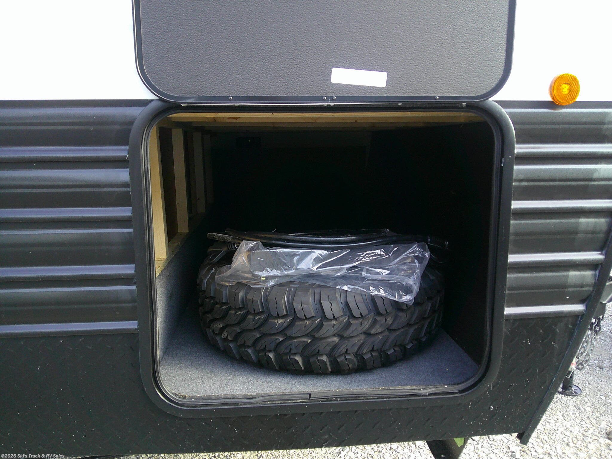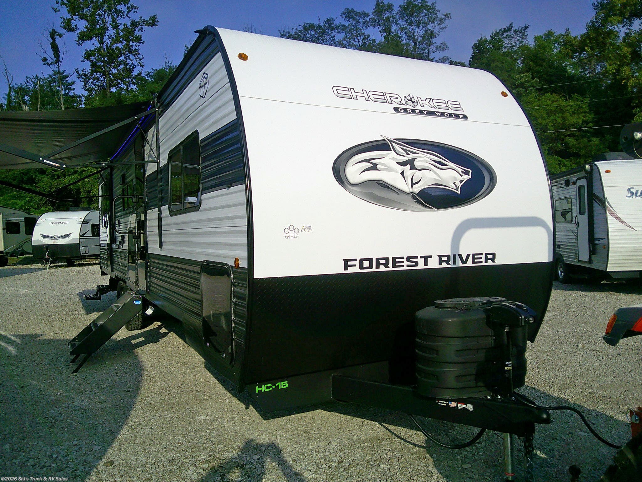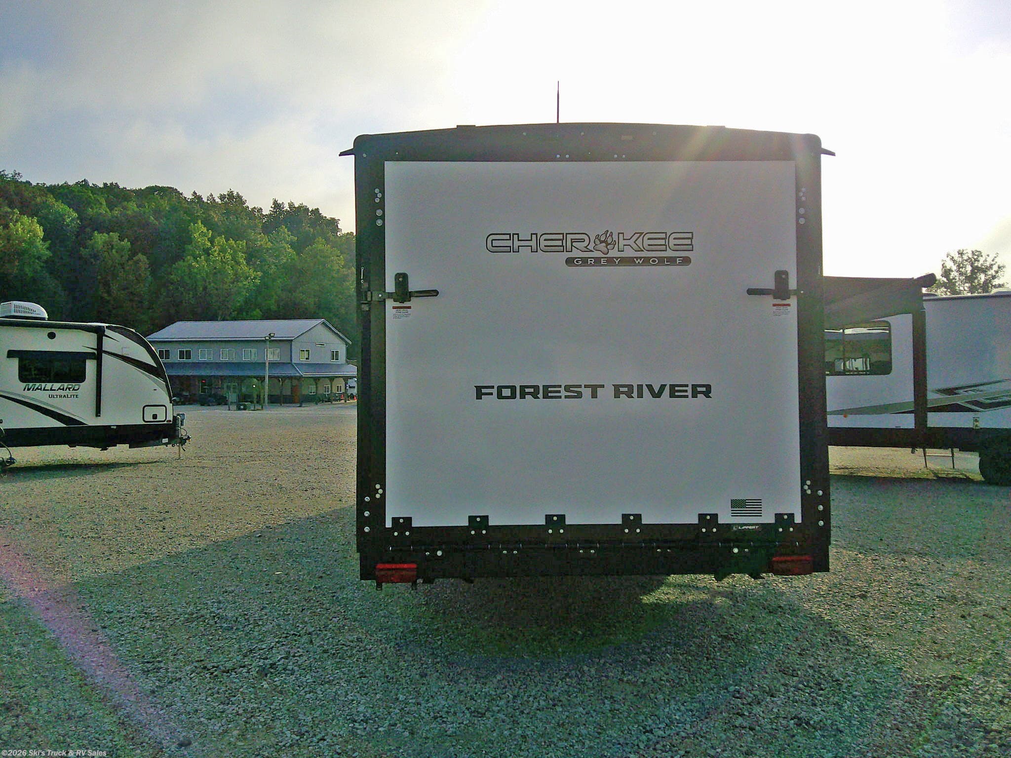 2026 Forest River Cherokee Grey Wolf 28RRT Travel Trailer Toy Hauler; 34 Foot; 1 Slide;Sleeps 8; Large Garage: 132 In. x 92 In.; Rear Deck with Moon Shade; Hitch Weight: 755 Lbs.; Dry Weight: 7474 Lbs.; 30 Amp; Power Tongue and Stabilizer Jacks; 52 Gal. Fresh Water Cap.; 38 Gal. Black Water Cap.; 38 Gal. Gray Water Cap.; Two 20 Lbs. Propane Tanks; 15,000 BTU AC; 20,000 BTU Furnace; 10 C.F. (12V) Refrigerator; On Demand Water Heater; Convection Microwave; Airfryer; 3-Burner Stove; Two TV Jacks; Speakers; One Fireplace; U Shaped Dinette; Large Hidden Pantry; Stainless Steel Farm Sink; King Bed; Fold Down Sofa in Garage Area; One Bathroom with Shower; 15 Foot Power Awning with LED Lights; Backup Camera; Solar Package (200W); Outside Kitchen ; Outside Shower; Exterior Storage; Foldup Steps; Grab Handle; Leash Latch; Battery Disconnect; Black Tank Flush; Heated Tanks; Tinted Windows; Aluminum Wheels; Spare Tire; One Year Limited Warranty; Financing Available; NO HIDDEN FEES; Great Travel Trailer Toy Hauler for the Price: $33,995. Call Skis Truck & RV Sales at 765-344-1111 or visit us at for more information.