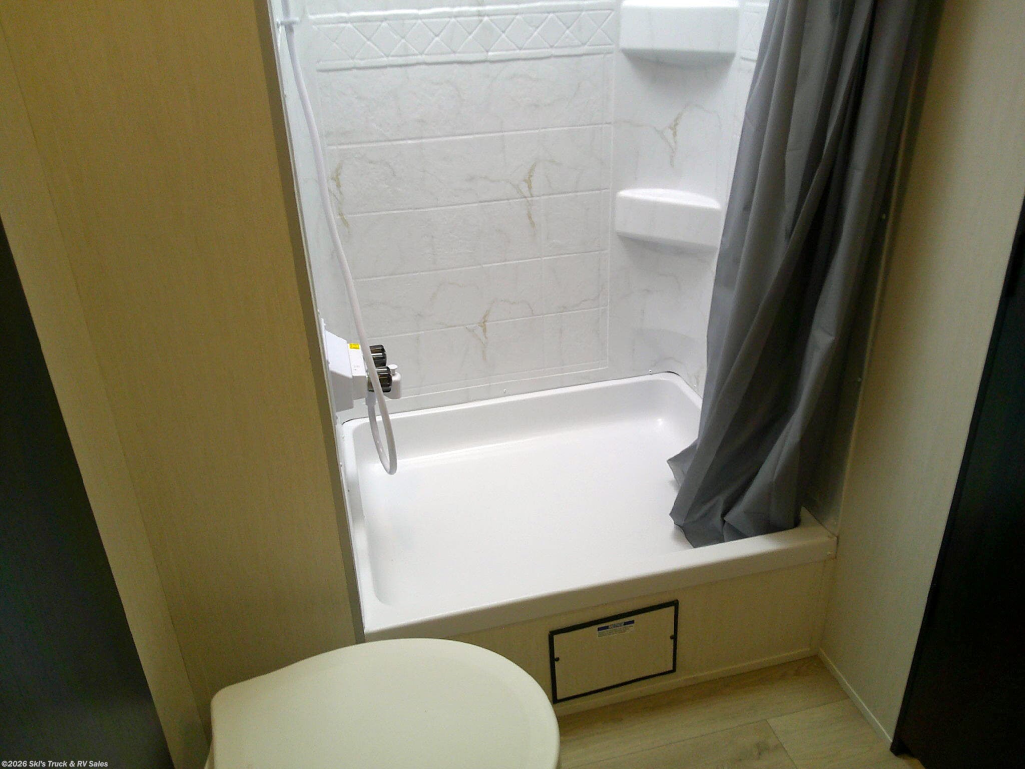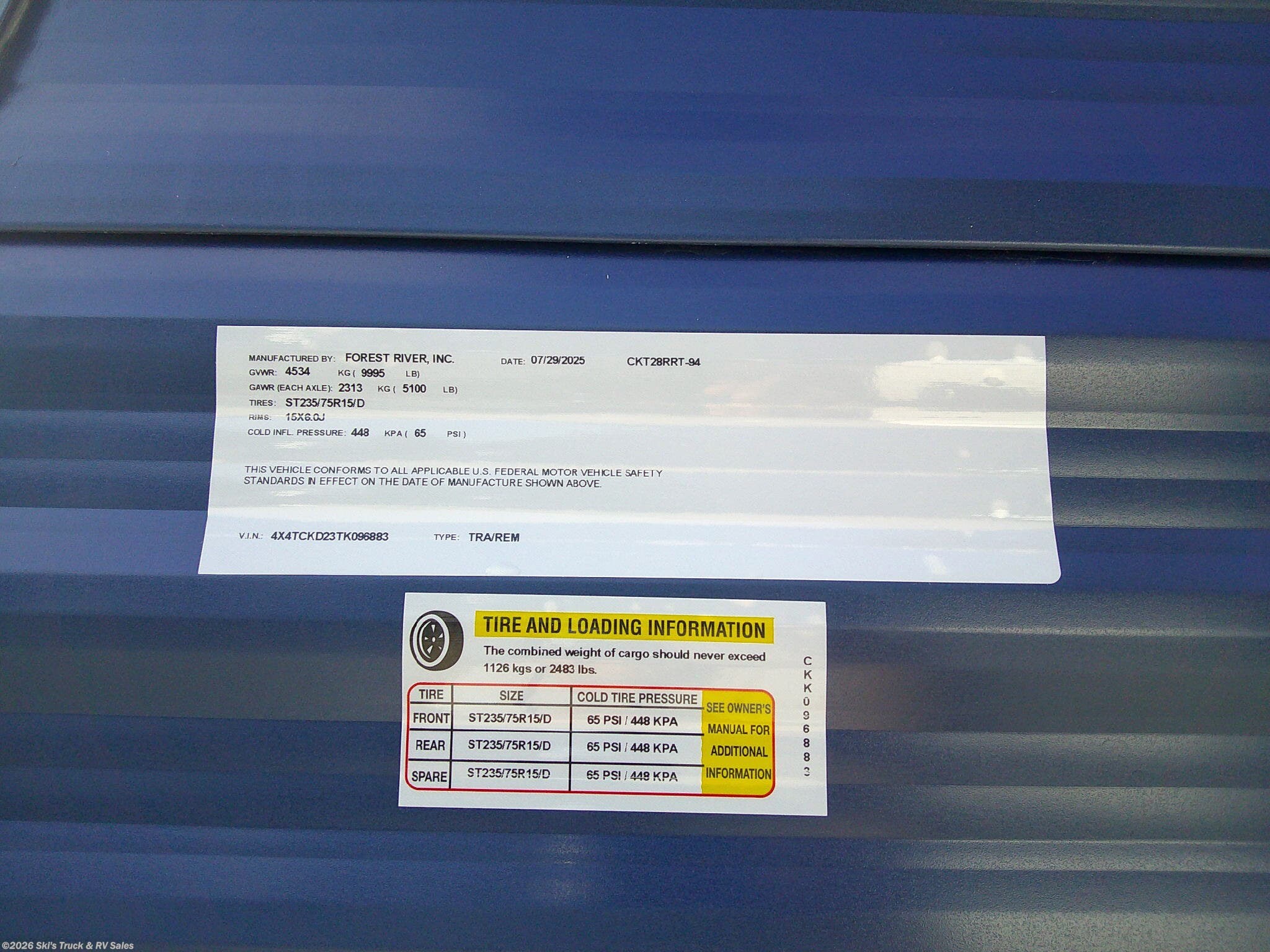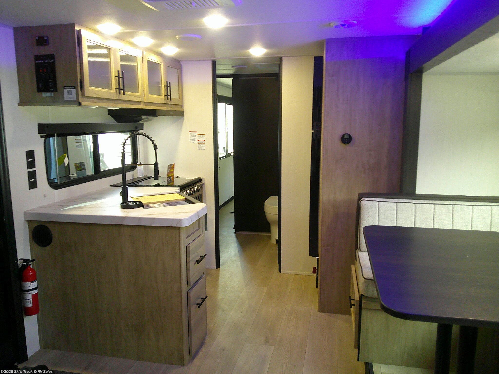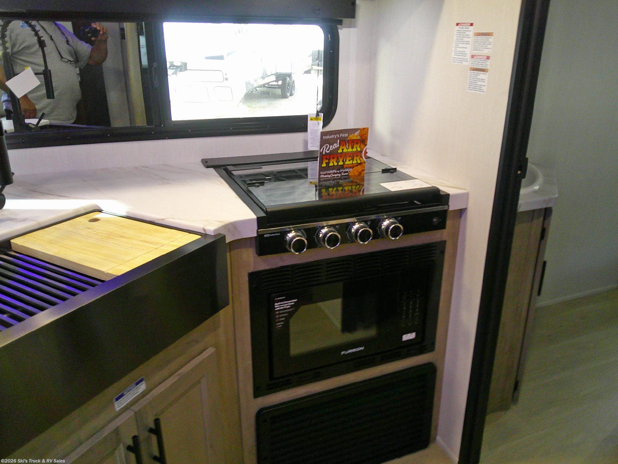 2026 Forest River Cherokee Grey Wolf 28RRT Travel Trailer Toy Hauler; 34 Foot; 1 Slide;Sleeps 8; Large Garage: 132 In. x 92 In.; Rear Deck with Moon Shade; Hitch Weight: 755 Lbs.; Dry Weight: 7474 Lbs.; 30 Amp; Power Tongue and Stabilizer Jacks; 52 Gal. Fresh Water Cap.; 38 Gal. Black Water Cap.; 38 Gal. Gray Water Cap.; Two 20 Lbs. Propane Tanks; 15,000 BTU AC; 20,000 BTU Furnace; 10 C.F. (12V) Refrigerator; On Demand Water Heater; Convection Microwave; Airfryer; 3-Burner Stove; Two TV Jacks; Speakers; One Fireplace; U Shaped Dinette; Large Hidden Pantry; Stainless Steel Farm Sink; King Bed; Fold Down Sofa in Garage Area; One Bathroom with Shower; 15 Foot Power Awning with LED Lights; Backup Camera; Solar Package (200W); Outside Kitchen ; Outside Shower; Exterior Storage; Foldup Steps; Grab Handle; Leash Latch; Battery Disconnect; Black Tank Flush; Heated Tanks; Tinted Windows; Aluminum Wheels; Spare Tire; One Year Limited Warranty; Financing Available; NO HIDDEN FEES; Great Travel Trailer Toy Hauler for the Price: $33,995. Call Skis Truck & RV Sales at 765-344-1111 or visit us at for more information.