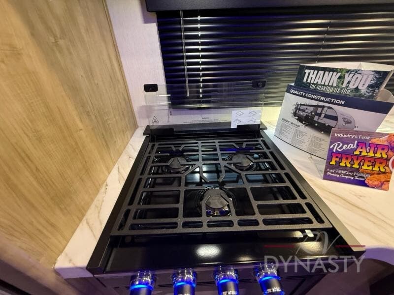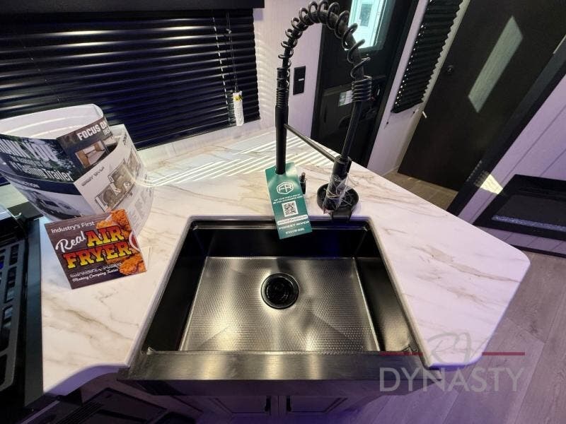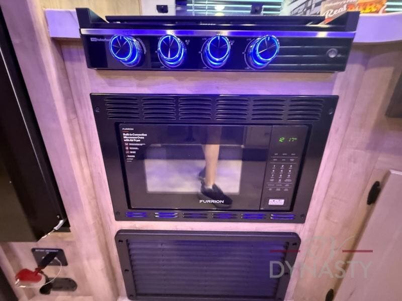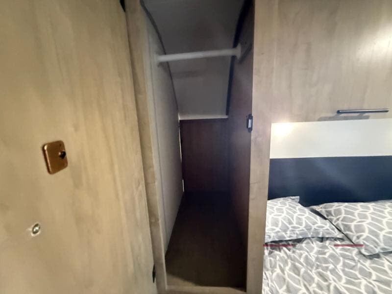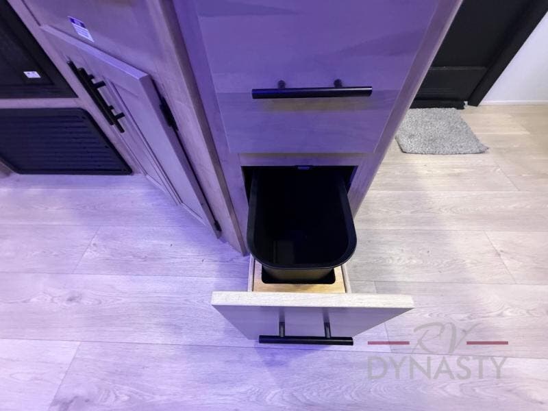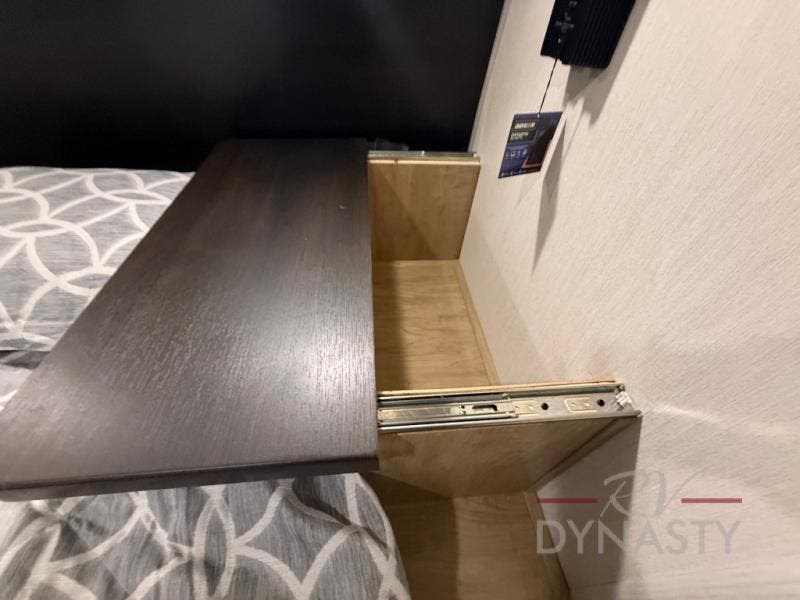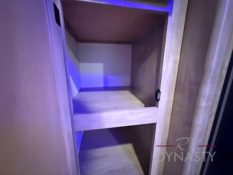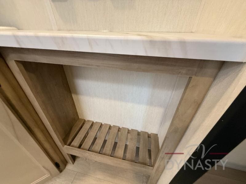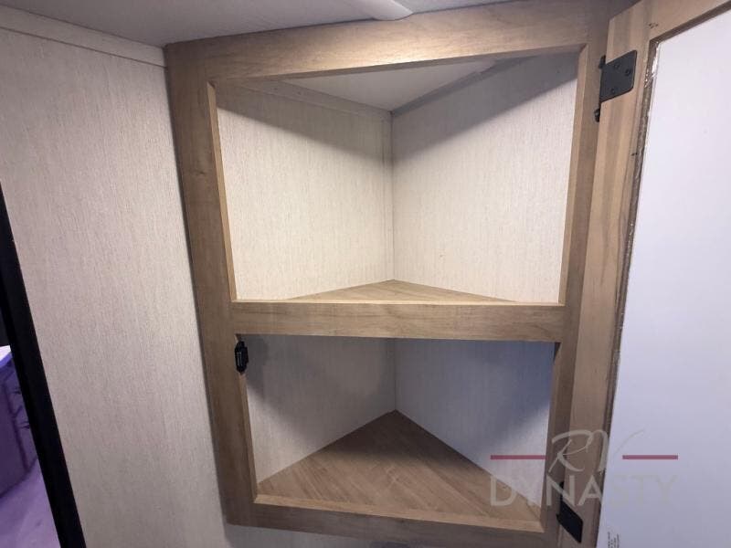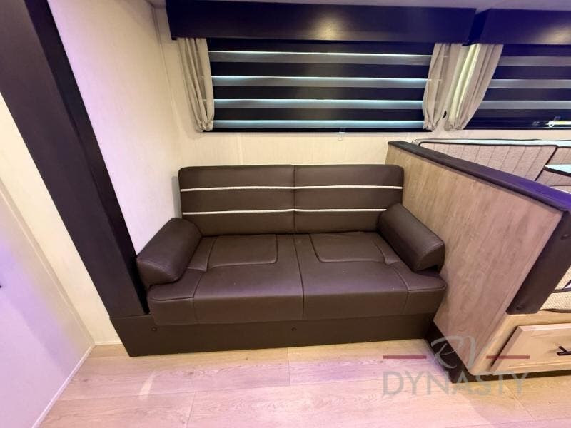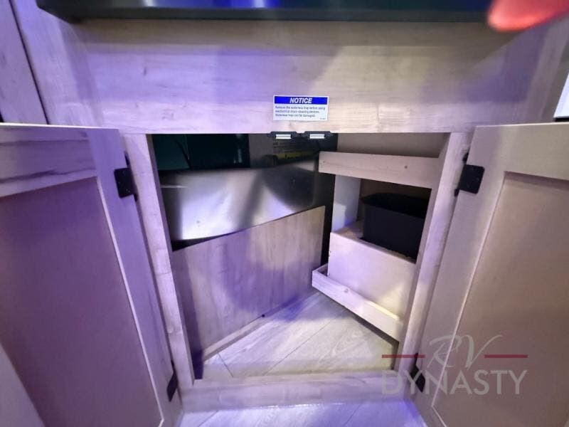 You will love how easy it is to enter/exit this travel trailer with dual entry doors! The rear door leads into the living/kitchen area where you will notice the large U-shaped dinette and the sofa which sit on the slide and create a spacious footprint for moving about, as well as great places to play games and socialize with your friends and family. Plus, there is an entertainment center with a fireplace and a fully equipped kitchen to keep everyone's bellies filled with delicious home cooked meals. At night, there is sleeping space for everyone between the bunks above the sofas with a table in the rear private bunkhouse and the RV king bed in the front private bedroom, plus the furniture can convert into sleeping spaces. The walk-through bathroom leads directly into the bedroom too!