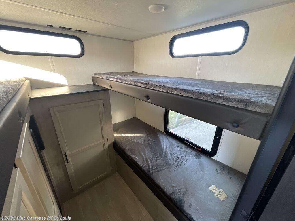 Your larger family will love spending weekends away with this Cherokee Grey Wolf travel trailer as their home away from home. This model offers lots of sleeping space with three bunk beds in the rear private bunkhouse. In the front, there is a master suite with a wardrobe beside RV king bed, and it even has private access to the dual-entry bath. The two entry doors will make accessing the trailer easy for everyone, and you will appreciate the abundant storage throughout this unit including large overhead cabinets, a spacious pantry, and numerous outside storage compartments for all of your outdoor gear. There's even an outside bar & grill!