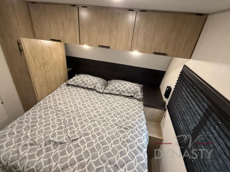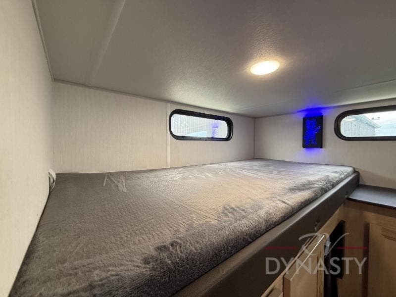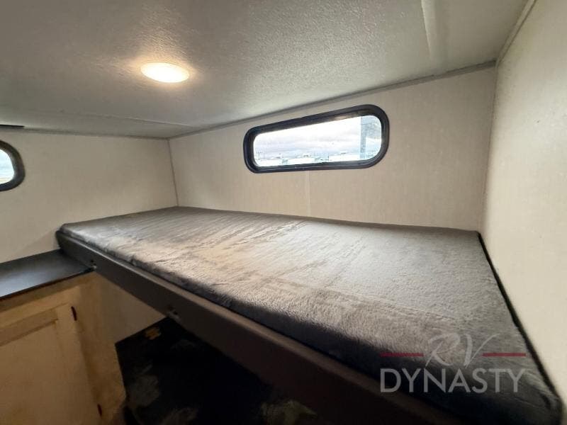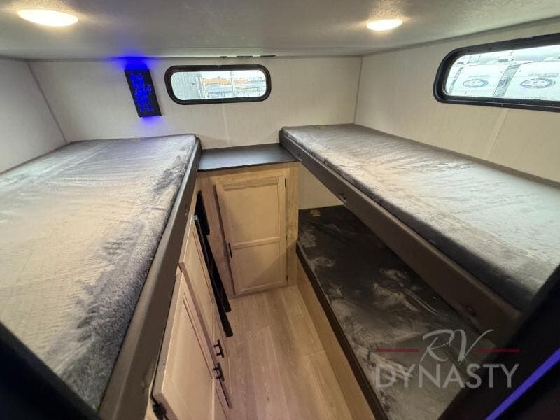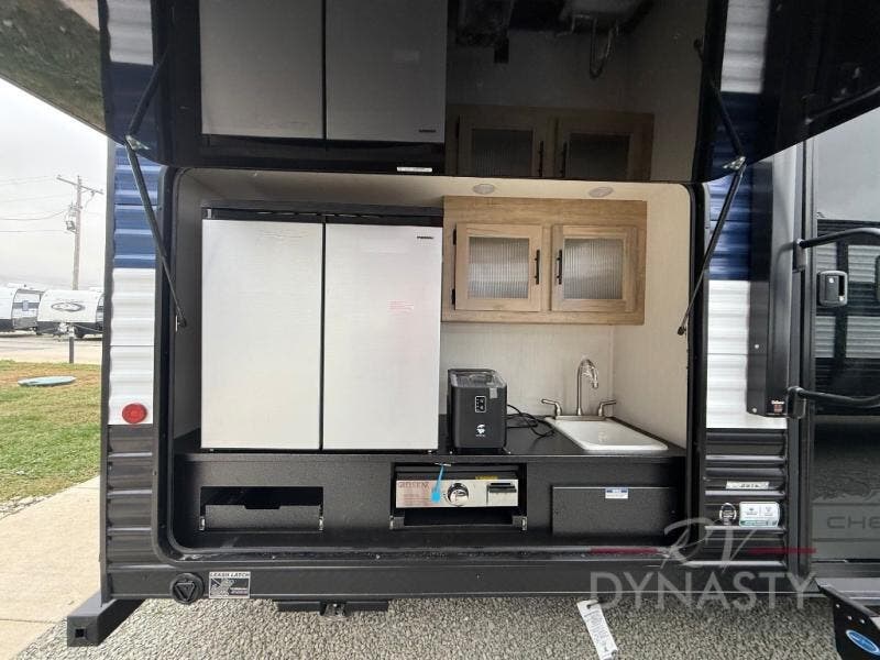 Your larger family will love spending weekends away with this Cherokee Grey Wolf travel trailer as their home away from home. This model offers lots of sleeping space with three bunk beds in the rear private bunkhouse. In the front, there is a master suite with a wardrobe beside RV king bed, and it even has private access to the dual-entry bath. The two entry doors will make accessing the trailer easy for everyone, and you will appreciate the abundant storage throughout this unit including large overhead cabinets, a spacious pantry, and numerous outside storage compartments for all of your outdoor gear. There's even an outside bar & grill!