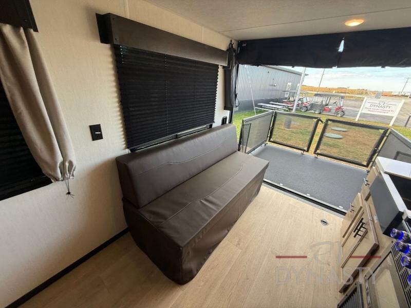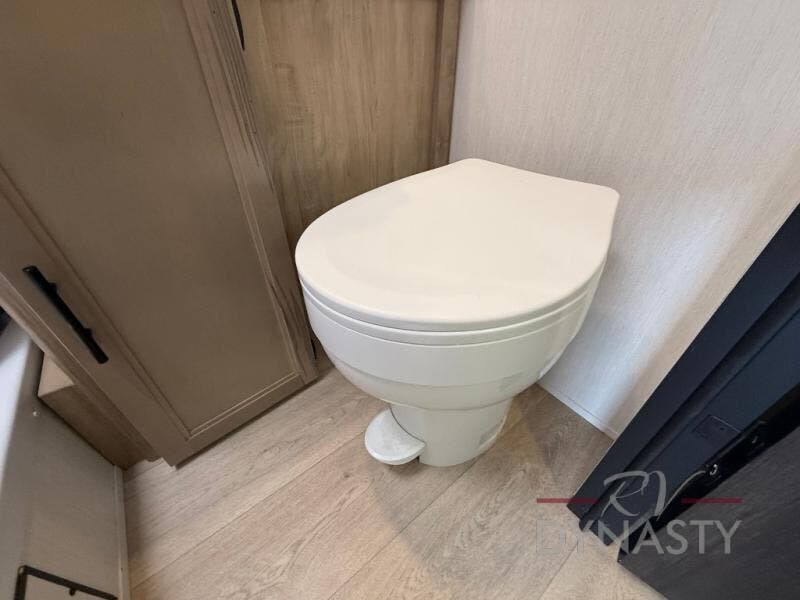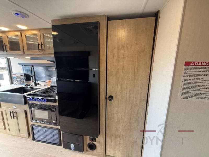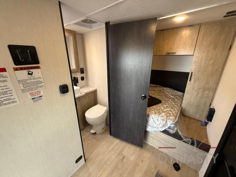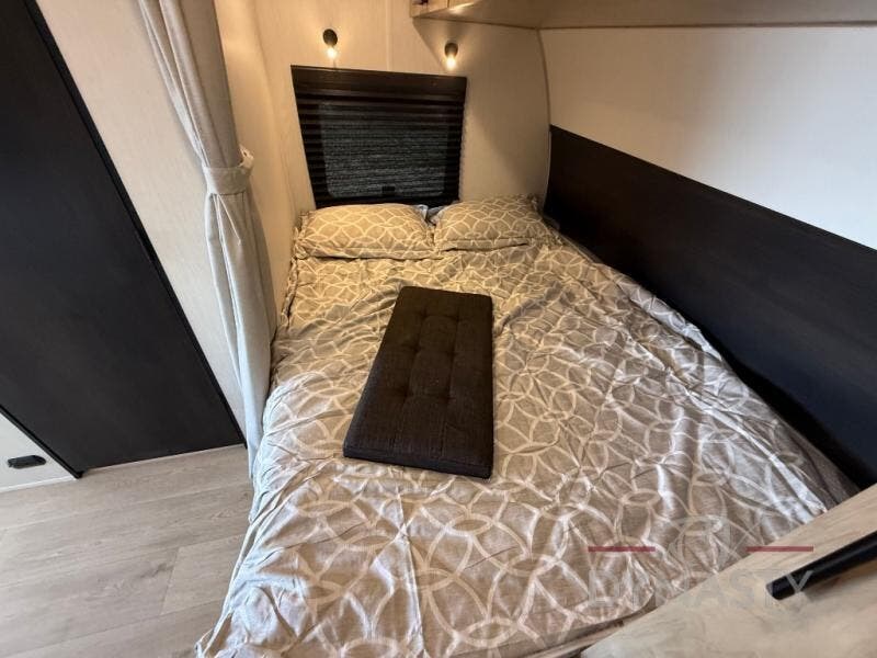 You will undoubtedly love this Cherokee Grey Wolf Black Label toy hauler! Because of its ability to have up to 15' 2" of cargo space, you can easily load up the ramp door and head out to your outdoor toy land, and you can bring much more than just your toys since this trailer also comes with exterior storage, a bedside wardrobe, overhead cabinets, a refrigerator, and a kitchen pantry. The full bathroom is another feature that is going to allow you to experience a true getaway since you won't need to find public facilities to use while you're gone, and the USB charging stations will allow you to charge your phone inside while you're outside playing.