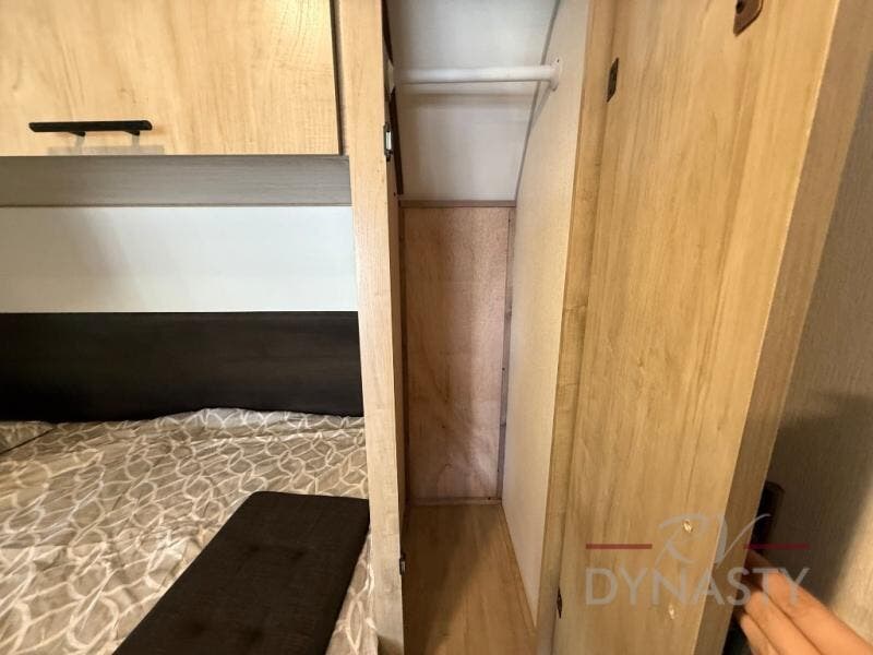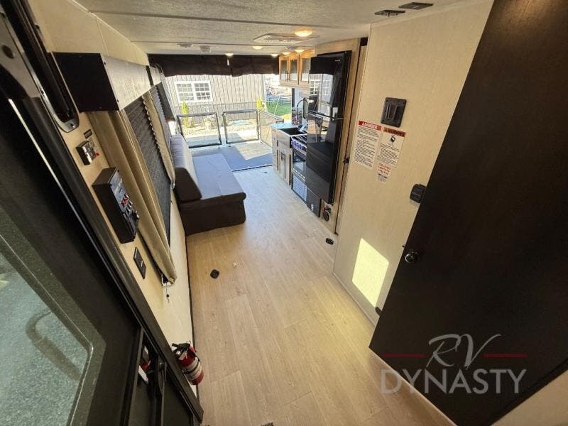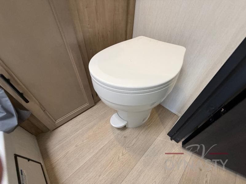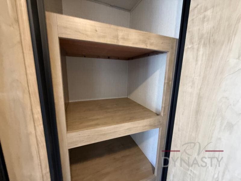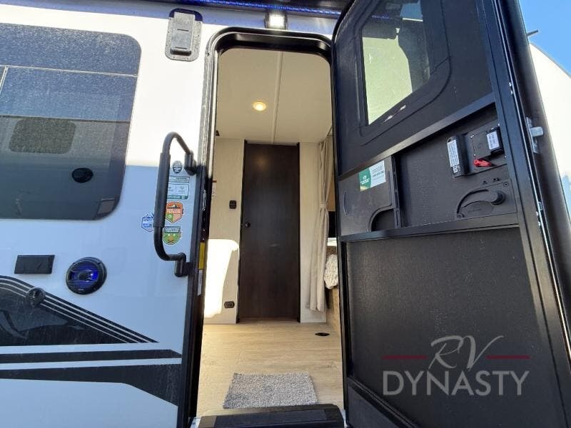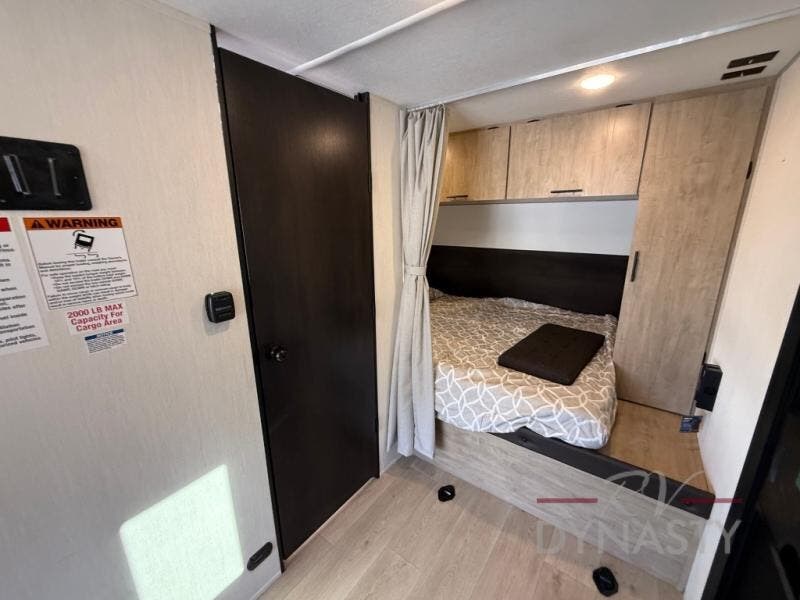 You will undoubtedly love this Cherokee Grey Wolf Black Label toy hauler! Because of its ability to have up to 15' 2" of cargo space, you can easily load up the ramp door and head out to your outdoor toy land, and you can bring much more than just your toys since this trailer also comes with exterior storage, a bedside wardrobe, overhead cabinets, a refrigerator, and a kitchen pantry. The full bathroom is another feature that is going to allow you to experience a true getaway since you won't need to find public facilities to use while you're gone, and the USB charging stations will allow you to charge your phone inside while you're outside playing.