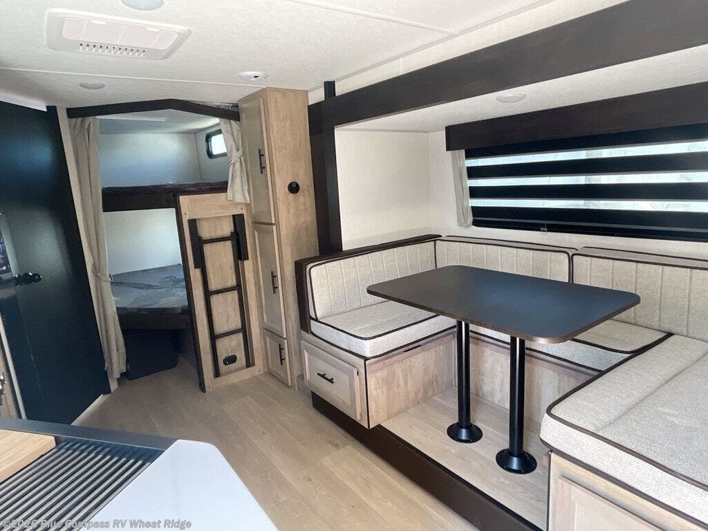 You will love the space provided in this dual entry Cherokee Grey Wolf Black Label travel trailer that has double-size bunks! The rear entry door leads right into the full bath allowing easy access from outside when you need to use the bathroom while you're enjoying the great outdoors. The large U-shaped dinette slide will not only seat everyone comfortably for a meal or a game, but since it also slides out, it opens up the interior even more to give you plenty of space for foot traffic. For all of your outdoor gear, you will find the outside storage compartments handy for stowing away your things when not in use. While the kids enjoy their bunk beds, you will enjoy a good night's rest on the RV king bed with wardrobes on either side up in the front private bedroom!