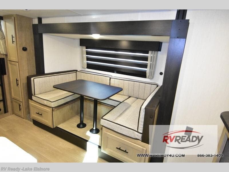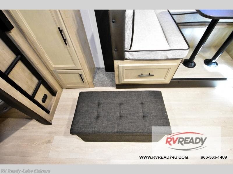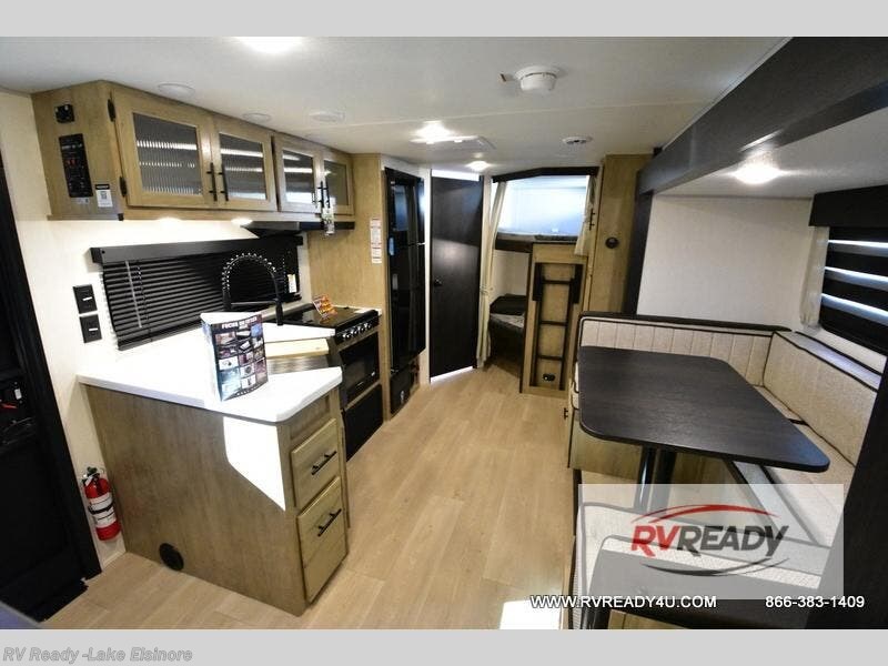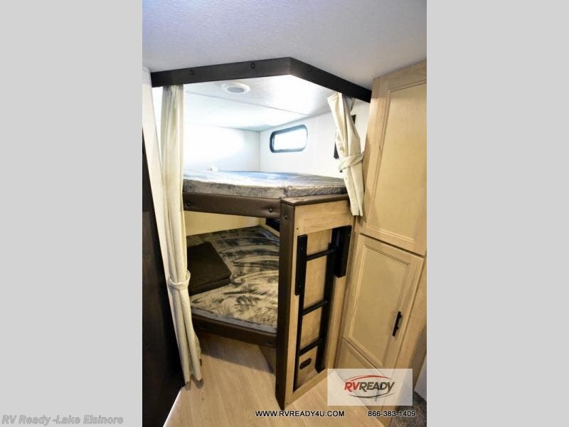 You will love the space provided in this dual entry Cherokee Grey Wolf Black Label travel trailer that has double-size bunks! The rear entry door leads right into the full bath allowing easy access from outside when you need to use the bathroom while you're enjoying the great outdoors. The large U-shaped dinette slide will not only seat everyone comfortably for a meal or a game, but since it also slides out, it opens up the interior even more to give you plenty of space for foot traffic. For all of your outdoor gear, you will find the outside storage compartments handy for stowing away your things when not in use. While the kids enjoy their bunk beds, you will enjoy a good night's rest on the RV king bed with a wardrobe in the front private bedroom!