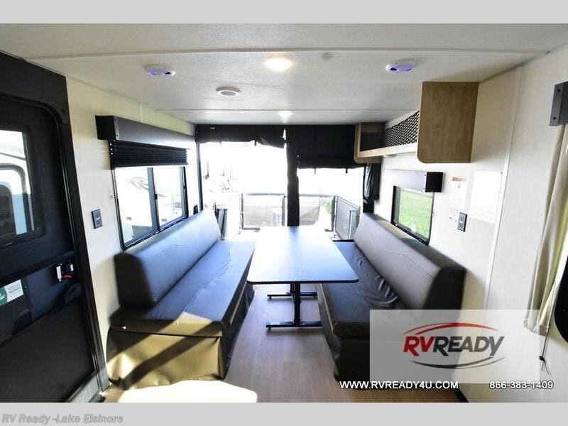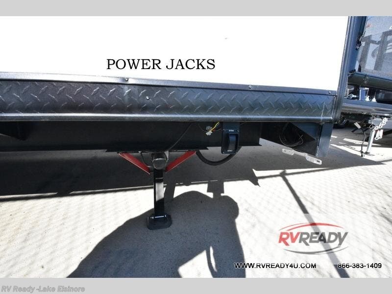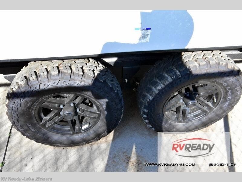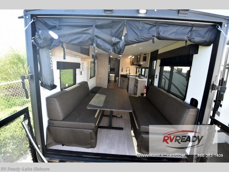 This dual entry toy hauler will allow you to enter in through the main living area or the front master bedroom for convenience! There is a walk-through bath that will be easily accessible for everyone, and there is plenty of storage space for personal belongings. Head to the full kitchen to prepare a home cooked meal, or head outdoors to enjoy the outside kitchen. There is also an outside TV mount if you brought a TV along, and a 15' power awning to provide shade. You can easily unload your toys using the ramp door, then relax on the fold-down sofas with a removable tale.