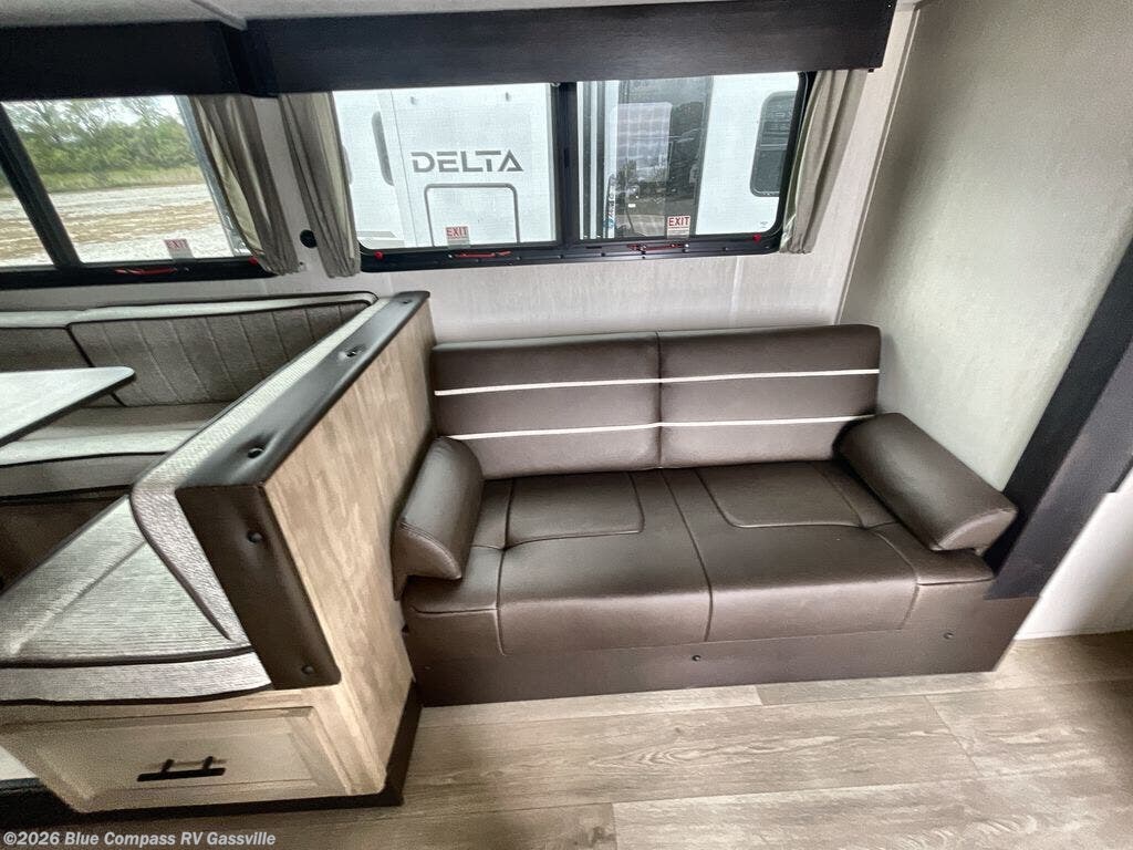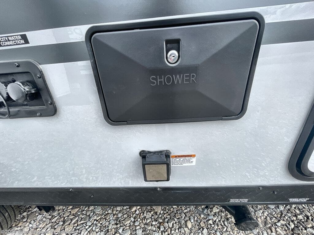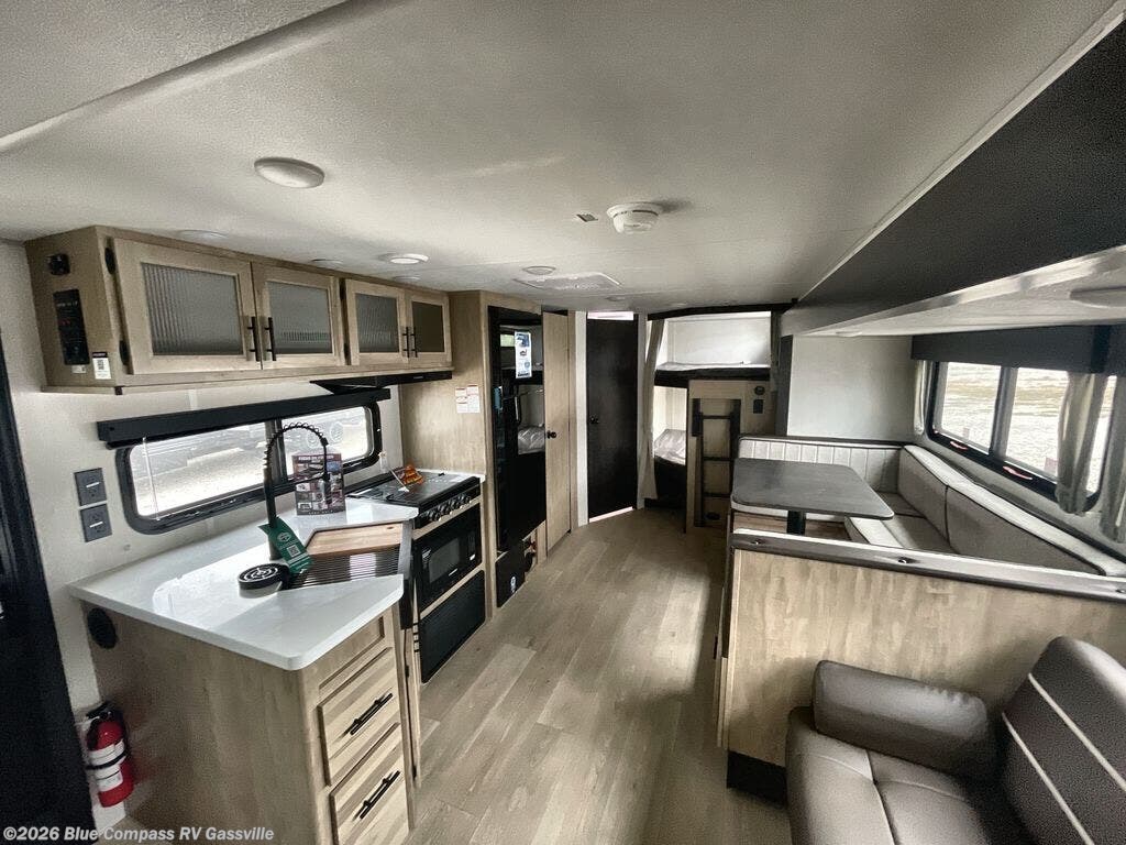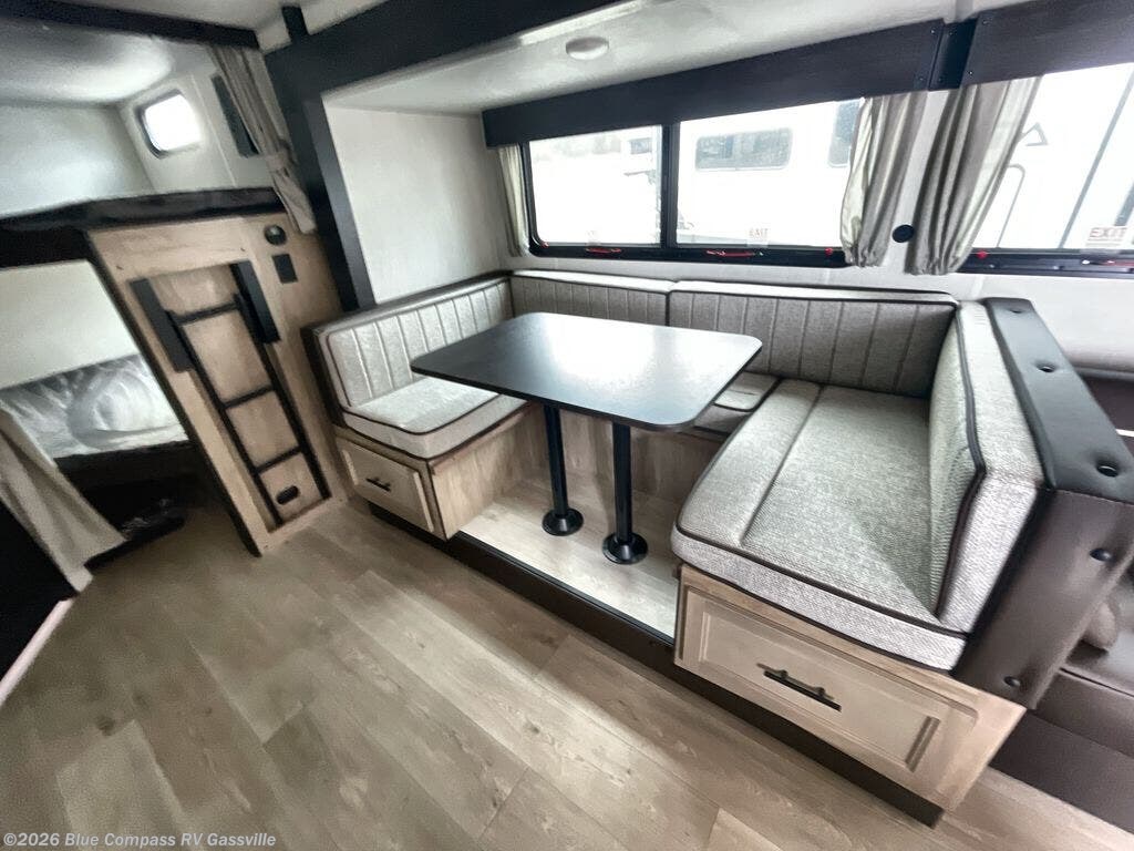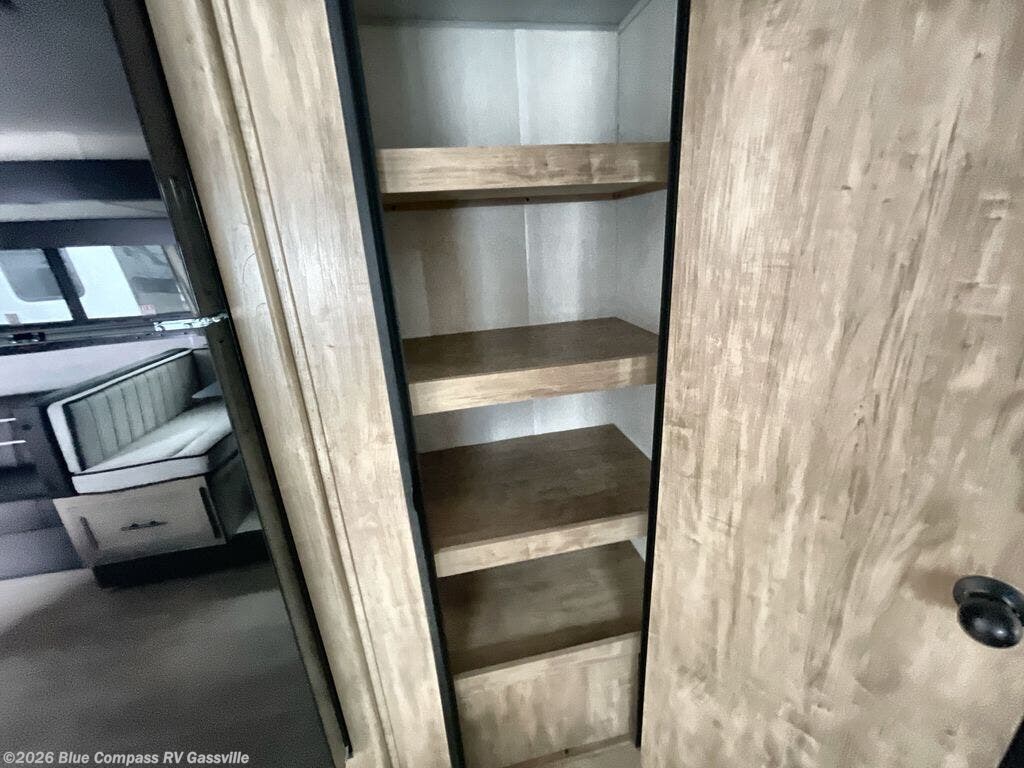 Come on inside this Cherokee Grey Wolf Black Label travel trailer and experience the convenience of a smooth flow of traffic in and out with two entry doors. The rear door leads into a full bath which is great for accessibility when outside and when you need to use the bathroom. Once inside, you will notice the large U-shaped dinette and the sofa which sit on the slide and create a spacious footprint for moving about, as well as great places to play games and socialize with your friends and family. A large pantry provides plenty of storage allowing you to stock up on your favorite snacks and dry goods for your family adventure. At night, there is sleeping space for everyone between the double-size bunks and the RV king bed, plus the furniture.