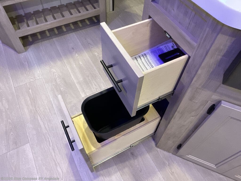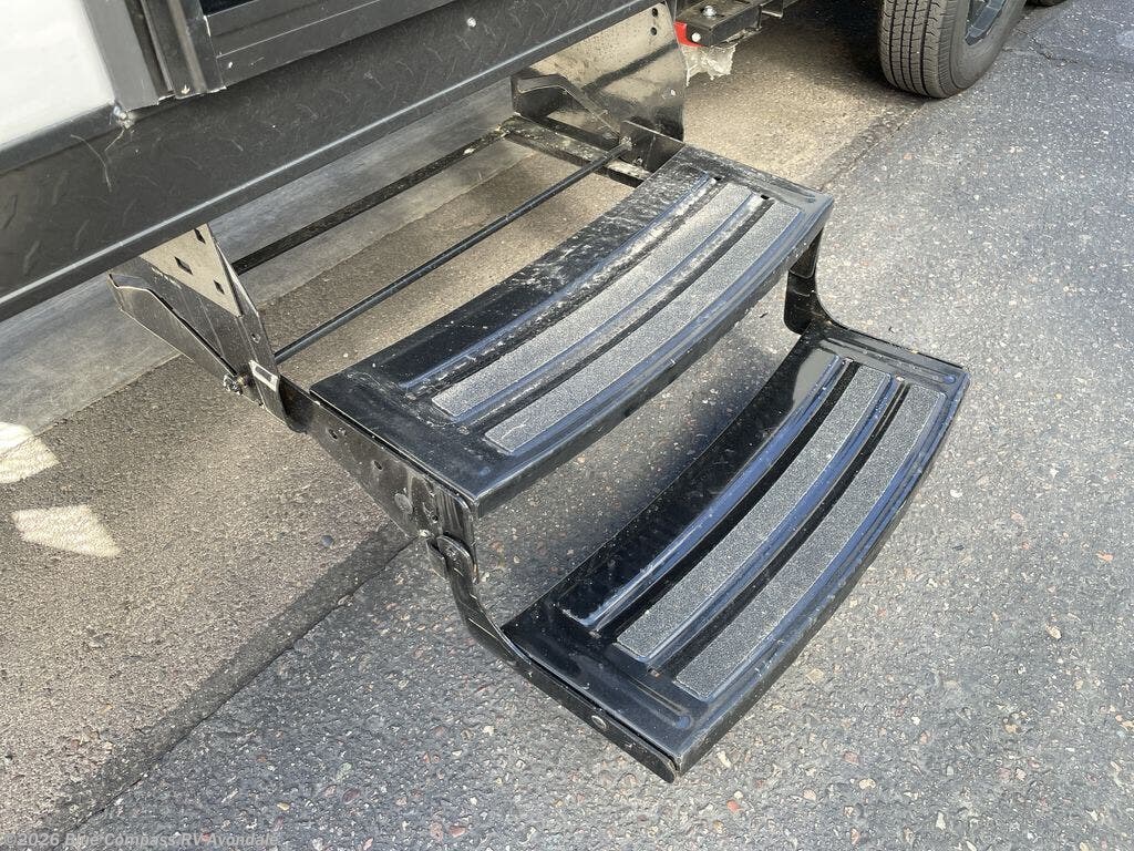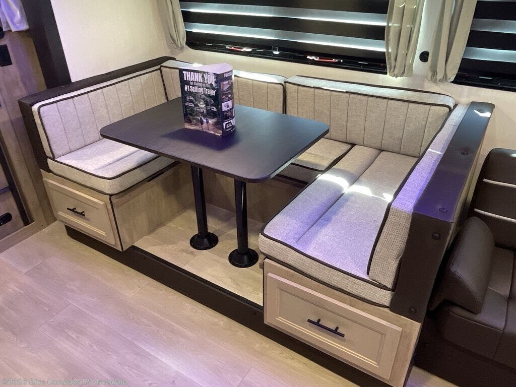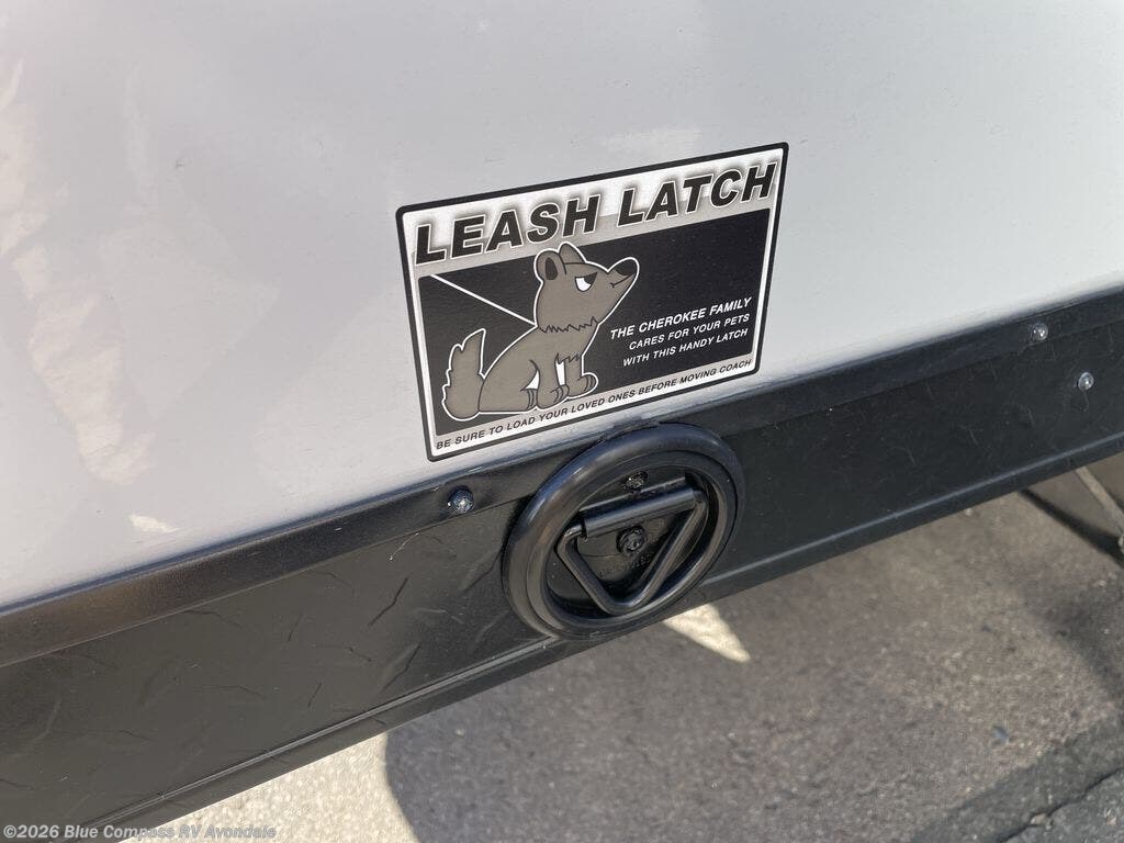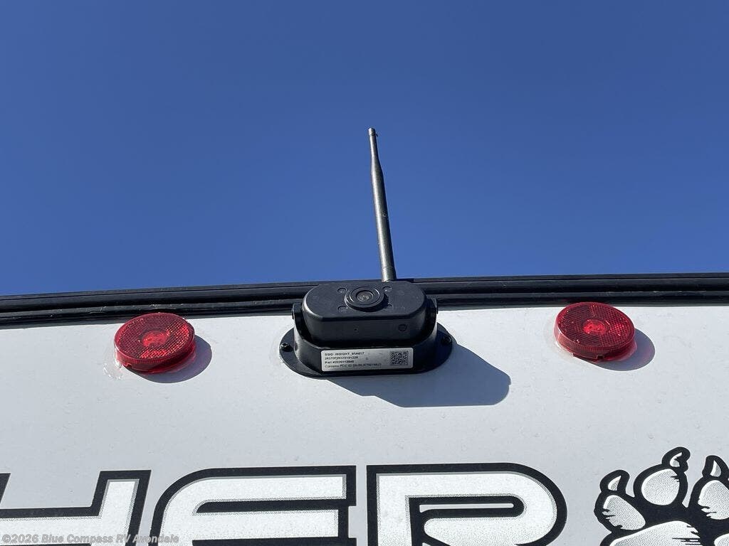 Come on inside this Cherokee Grey Wolf Black Label travel trailer and experience the convenience of a smooth flow of traffic in and out with two entry doors. The rear door leads into a full bath which is great for accessibility when outside and when you need to use the bathroom. Once inside, you will notice the large U-shaped dinette and the sofa which sit on the slide and create a spacious footprint for moving about, as well as great places to play games and socialize with your friends and family. A large pantry provides plenty of storage allowing you to stock up on your favorite snacks and dry goods for your family adventure. At night, there is sleeping space for everyone between the double-size bunks and the RV king bed, plus the furniture.