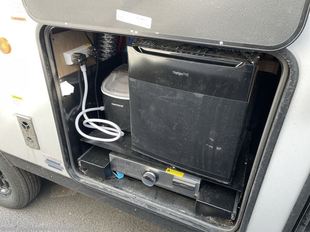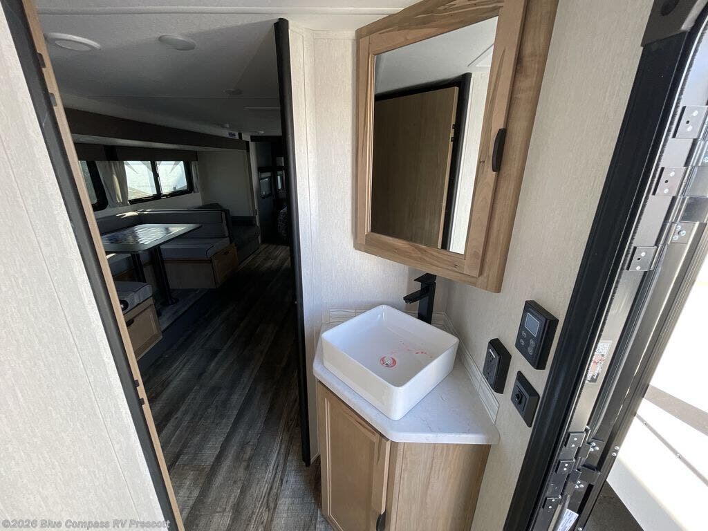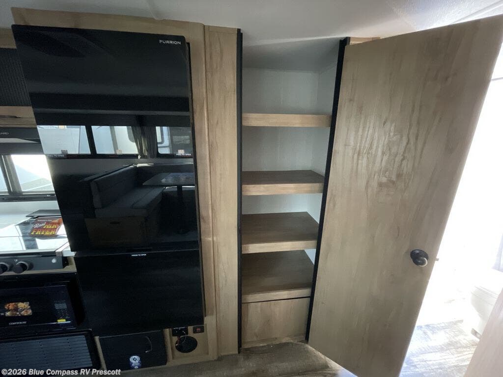 Come on inside this Cherokee Grey Wolf Black Label travel trailer and experience the convenience of a smooth flow of traffic in and out with two entry doors. The rear door leads into a full bath which is great for accessibility when outside and when you need to use the bathroom. Once inside, you will notice the large U-shaped dinette and the sofa which sit on the slide and create a spacious footprint for moving about, as well as great places to play games and socialize with your friends and family. A large pantry provides plenty of storage allowing you to stock up on your favorite snacks and dry goods for your family adventure. At night, there is sleeping space for everyone between the double-size bunks and the RV king bed, plus the furniture.