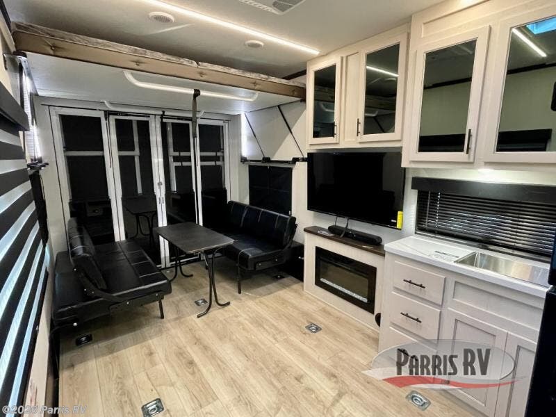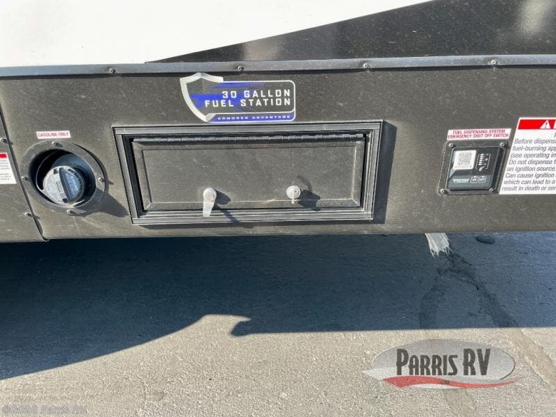 Every one of these Forest River Cherokee Rogue Armored travel trailer toy haulers come with the features you want most at an affordable price tag! The DuraPoxy gas/oil resistant floor has 5,000 lb. tie downs to ensure your toys will arrive safely without damaging the flooring, plus the 3,000 lb. rated ramp door makes it easy to load them. A 15,000 BTU A/C will keep you cool even on the hottest summer days, and there are heated enclosed holding tanks with 12V heat pads on every tank for added protection. Each model includes a fuel station with a digital readout, a ramp door patio system, a tire pressure monitoring system, and many more stand-out features. Inside, you'll find zebra shades in the living room, multiple USB charging stations, a multi-functional kitchen sink, glass shower doors, and many more comforts!