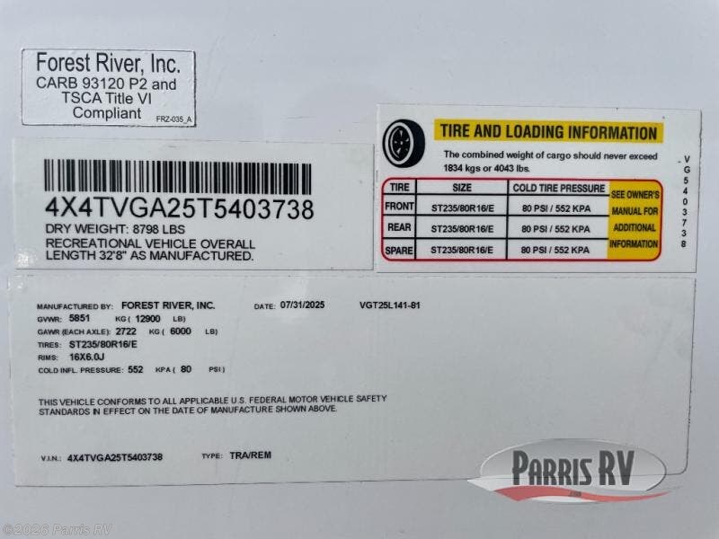 - VIN4X4TVGA25T5403738