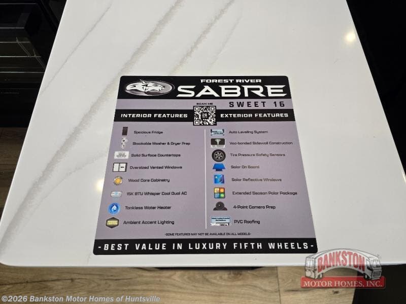 Request More Info on this 2026 Forest River Cherokee Sabre 36EST Offered for sale by Bankston Motor Homes of Huntsville