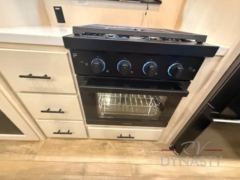 You will experience luxurious camping trips at an affordable price with any one of these Forest River Cherokee Sabre fifth wheels! These models are durable and ready to travel anytime of the year thanks to features like the high-gloss gel-coat front cap with LED lighting, the PVC roof membrane, and the forced air underbelly with enclosed gate valves. The electric auto-leveling system makes setting up easy and safe, and the adjustable power awning with LED lighting will create an inviting outdoor living space. Each model includes a universal docking station which includes a black tank flush and an outside shower, and adjustable stable steps for you to enter and exit the unit safely. Inside, you will love the design of the ambient accent lighting in the living area, the real wood lumbercore cabinetry, and the linoleum flooring!
